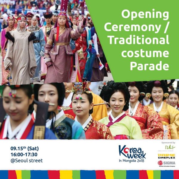 Энэ үеэр Солонгосын үндэсний урлагийн концерт, Монгол- Солонгос үндэсний хувцасны парад, Монгол-Солонгос алдарт дуучдын оролцсон Сөүлийн гудамжны парти, К-Поп оддын концерт, Хамтарсан урлагийн тоглолт болох болохоос гадна Солонгос үндэсний хоолыг амталж, тоглоом наадгайтай танилцах асрууд ажиллах юм.