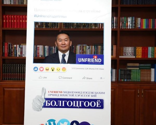 Ерөнхийлөгч Х.Баттулга нийгмийн сүлжээний хэрэглэгчдэд эрх зүйн болон интернэт хэрэглээний мэдлэг олгох, хариуцлагатай хэрэглээг бий болгох, учирч болох эрсдэлээс урьдчилан сэргийлэх зорилгоор Цагдаагийн ерөнхий газраас санаачлан зохион байгуулж буй нэг сарын аяныг дэмжиж буйгаа илэрхийлж, зургаа авахууллаа.