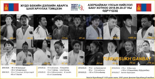Өнөөдөр Азербайжаны нийслэл Баку хотноо жүдогийн ДАШТ-ий эрэгтэй -66 кг, эмэгтэй -52 кг-ийн жингийн аваргууд тодроно.