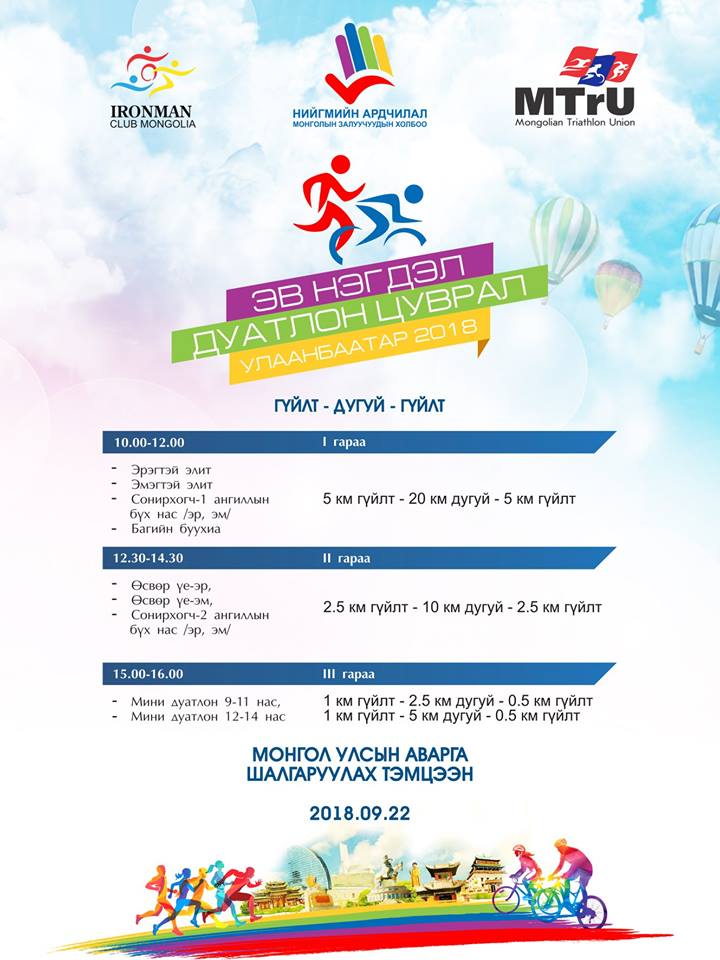 Мөн төв талбайд унадаг дугуйчдын парад, триатлоны спортын төрөлд орох дуатлоны улсын аварга шалгаруулах тэмцээн болно. Дөрвөн ангиллаар өртөөт марафоны тэмцээн, эрүүл эко хоолны үзэсгэлэн зэрэг олон арга хэмжээ болох юм.