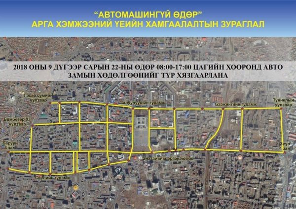 - Самбуугийн гудамж буюу Байгалийн түүхийн музейн уулвараас Гэсэр сүмийн уулзвар хүртэлх замыг түр хугацаагаар хязгаарлаж, томоохон зах, худалдааны төв амарч, иргэд олон нийтэд зориулсан урлаг, спортын олон арга хэмжээг зохион байгуулна.