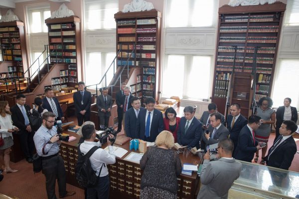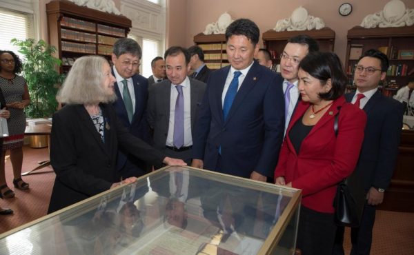 Ерөнхий сайд У.Хүрэлсүх Конгрессын номын санд ном гардуулж, дурсгалын дэвтэрт гарын үсэг зурав.