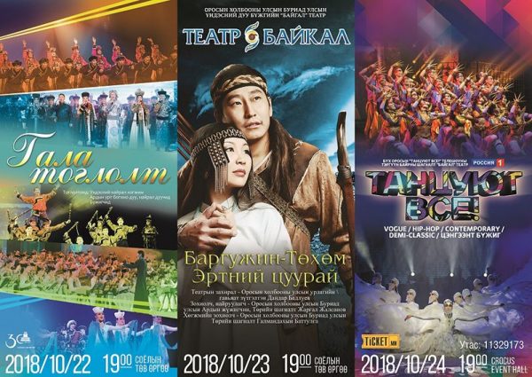 “Байгал” театрын айлчлан тоглолт Crocus Event Hall-ын тайзнаа аравдугаар сарын 24-нд өндөрлөнө. Театрын жүжигчид үндэсний хувцсаа орчин үеийн гоёлоор сольж, “Танцуют все!” бүжгийн шоу тэмцээнийг үзэгчдэд хүргэх юм. Орос орон даяар явагдсан “Россия-1” телевизийн шоу нэвтрүүлгийн ялагчаар 2017 оны хавар тус театрын бүжгэн жүжиг шалгарсан билээ.
