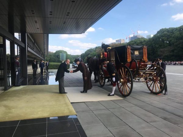 Түүнчлэн Эзэн хаан Акихито Япон улсад олон жил ажилласан туршлагатай, япон хэл мэддэг хүн Элчин сайдаар томилогдон ирж байгаад талархалтай байна хэмээгээд Япон, Монгол хоёр орны харилцаа, хамтын ажиллагаа өдрөөс өдөрт өргөжин гүнзгийрч байгаад сэтгэл хангалуун байгаагаа илэрхийлж, Монголын ард түмэнд сайн сайхныг хүсэн ерөөжээ.