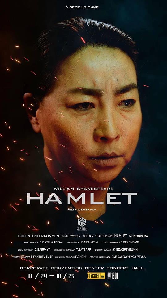 Уильям Шекспирийн эмгэнэлт “Гамлет” жүжгийг “Green entertainment”-ийн уран бүтээлчид энэ сарын 24, 25-нд Корпорэйт Конвеншн төвийн тайзнаа монодрам болгон үзэгчдэд хүргэхээр болжээ.