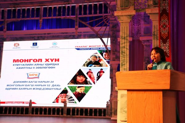 Зөвлөгөөний үйл ажиллагааг нээж НИТХ-ын Нийгмийн бодлогын хорооны дарга, тэргүүлэгч Д.Мөнхжаргал хэлсэн үгэндээ “НИТХ-ын Нийгмийн бодлогын хорооноос Нийслэлийн сургууль, цэцэрлэгийн дунд “Монгол хүн” хүмүүнлэгийн аяныг зарлаж, энэ хүрээнд хүүхдийн насны онцлогт тохирсон соёл хүмүүжлийн ажлыг үе шаттай зохион байгуулах, эх дэлхий, байгаль орчин, ургамал амьтныг хайрлан хамгаалах сэтгэлгээг тэдэнд бий болгох, үндэсний соёл ухамсар, үүх түүхийн уламжлалаа эрхэмлэх, эх хэл соёлоо дээдлэх, сургууль-багш-суралцагч-эцэг эхийн холбоог бий болгоход чиглэсэн ажлуудыг хэрэгжүүлж, хүүхэд багачуудын үндэсний хүмүүжлийн аяныг өрнүүлсэн сургууль, цэцэрлэгүүдийн дэвшилтэт, тэргүүн туршлагыг дэмжих, бусад сургуулиудад нэвтрүүлэх зорилгыг агуулж байгаа” гэв.