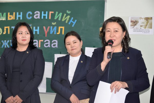УИХ-ын гишүүн Г.Мөнхцэцэг, “УИХ-ын гишүүд дотроос тойргийнхоо сургуульд номын сан байгуулж, ирээдүйн эздийг номын нөхөр болгох үйлсийг эхлүүлсэн нь цөөхөн гэж бодож байна. Анги танхимыг зүгээр тохижуулаад орхилгүй, номын клуб байгуулж, идэвхжүүлэх ажлыг хүртэл хийж байгаад УИХ-ын гишүүн А.Ундраа болон сургуулийн хамт олон, хамтран ажиллаж байгаа бүх хүнд талархал илэрхийлье” гээд өөрийн уран бүтээлийн дээжээс бэлэг барив. Мөн тэрээр сурагчдад зориулан “Битгий урваарай” шүлгээ уншсан юм.
