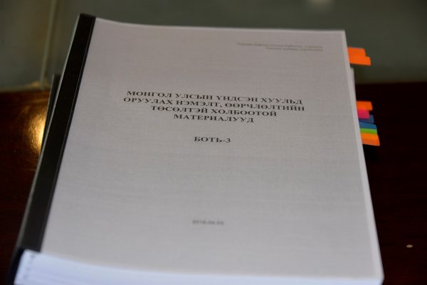 Тэрбээр үргэлжлүүлэн хэлэхдээ, “Монгол Улсын Үндсэн хуульд нэмэлт, өөрчлөлт оруулах төслийг боловсруулах үүрэг бүхий Ажлын хэсэг 2017 оны тавдугаар сарын 25-нд Улсын Их Хурлын даргын 78 дугаар захирамжаар байгуулагдсан. Энэ үндсэн дээр Үндсэн хуульд нэмэлт, өөрчлөлт оруулах хэрэгцээ шаардлагын талаар олон нийт, улс төрийн намууд, иргэний нийгмийн байгуулагууд, эрдэмтэн судлаачдыг оролцуулан хэд хэдэн үе шаттай хэлэлцүүлэг, судалгаа хийж, асуудал тус бүрт ажлын дэд хэсгүүд ажиллалаа. Монгол Улсын Үндсэн хуульд оруулах нэмэлт, өөрчлөлтийн төсөлд: