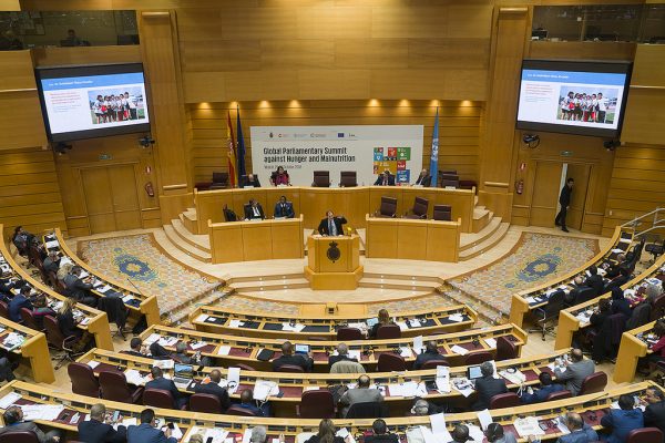Испани Улсын Сенатын тахимын дарга Алберто Фабра чуулганыг нээж үг хэллээ. Тэрбээр энэхүү чуулга уулзалтад хүрэлцэн ирсэн нийт төлөөлөгчдөд талархал илэрхийлээд, өлсгөлөн, шим тэжээлийн дутагдал, хүнсний аюулгүй байдал нь нэг улс, үндэстний бус дэлхийн бүх орнуудад тулгараад буй томоохон, нэн даруй шийдвэрлэвэл зохих асуудал гэдгийг онцолж, үүнтэй тэмцэхэд дэлхий нийт, тэр дундаа хууль тогтоох байгууллага харилцан мэдээлэл, туршлагаа солилцох нь нэн чухал болохыг тэмдэглэв.