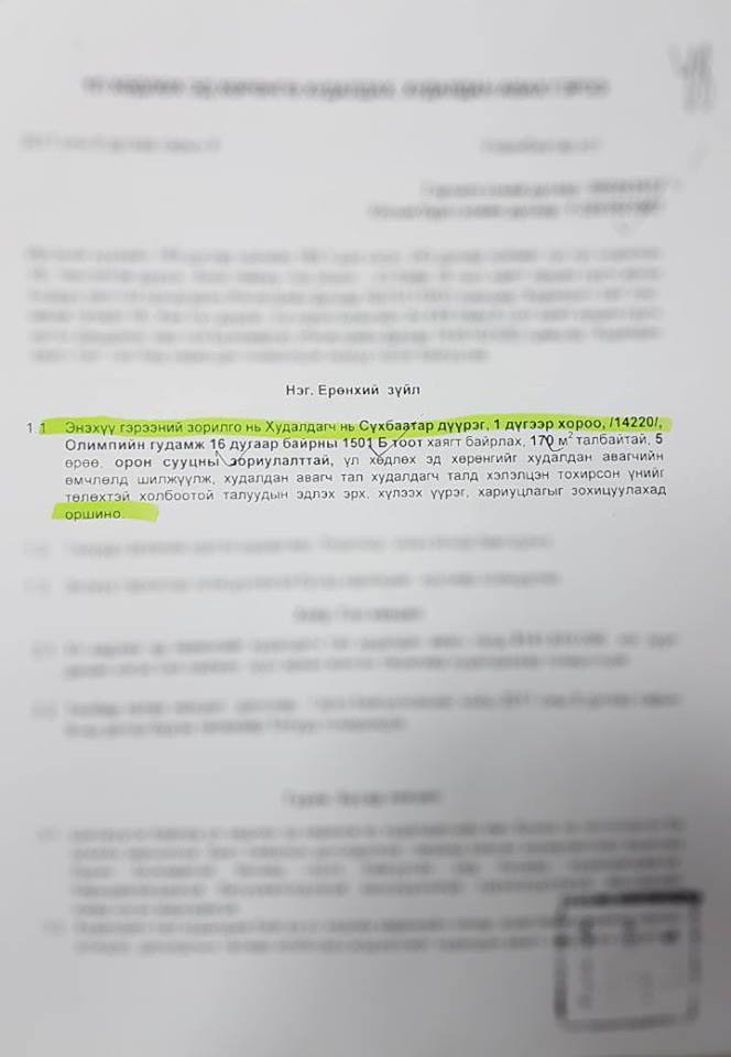 Бодоод үз дээ. Ж.Мөнхбат гишүүн цалингаараа энэ орон сууцыг худалдан аваагүй нь тодорхой. Тиймээс яг ямар эх үүсвэрээс олсон, орж ирсэн орлогоор энэ орон сууцыг худалдаж авсан бэ гэдгийг хуулийнхан шалгаж тогтоох байлгүй. Ямартай ч Засгийн газрын Хэрэг эрхлэх газрын даргаар ажиллаж байхдаа орон сууцтай болсон гэдэг нь гэрээн дээрх хугацаагаар тодорхойлогдож байна.