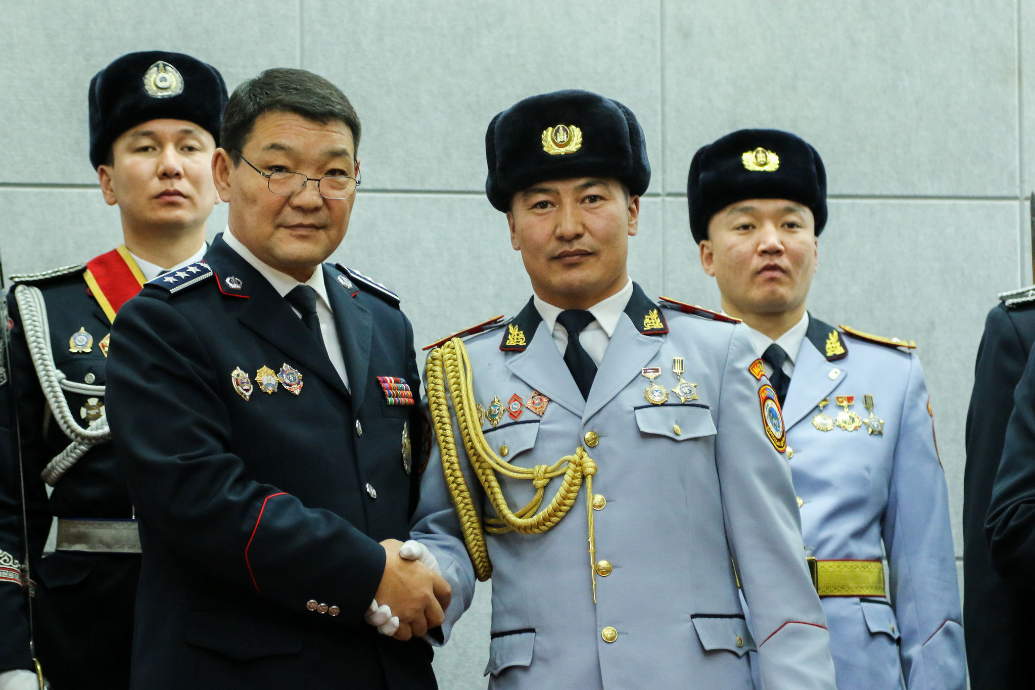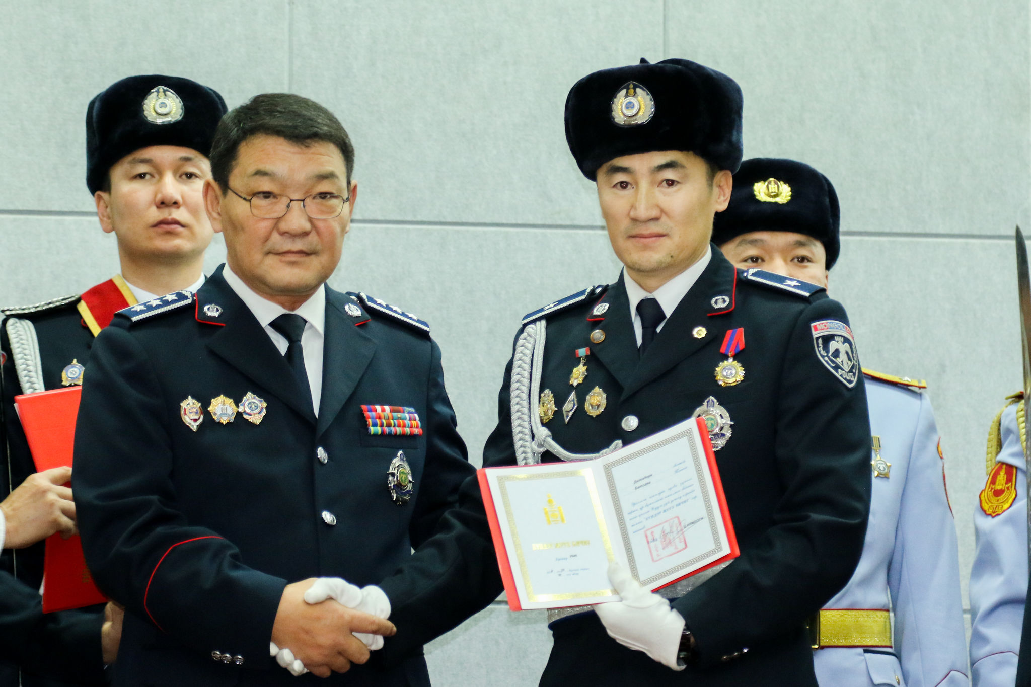 Түүхт ойн босгон дээр эрхэлсэн ажилдаа идэвх зүтгэл, үр бүтээлтэй ажилласан Цагдаагийн ерөнхий газрын Хар тамхитай тэмцэх газрын хэлтсийн дарга, цагдаагийн дэд хурандаа Д.Төгс-Ухаан, Тээврийн цагдаагийн албаны Замын цагдаагийн газрын хэлтсийн ахлах мэргэжилтэн, цагдаагийн дэд хурандаа Б.Цэндзэсэм нарын 15 алба хаагчийг Хууль зүйн албаны тэргүүний ажилтан тэмдэг, Цагдаагийн ерөнхий газрын Аюулгүй байдлын хэлтсийн ахлах байцаагч, цагдаагийн дэд хурандаа Б.Шинэбаатар, Мөрдөн байцаах албаны ахлах мэргэжилтэн, цагдаагийн дэд хурандаа Я.Наранбат, Тээврийн цагдаагийн албаны Мөрдөн шалгах газрын ахлах мөрдөгч С.Эрдэнэбилэг нарын 29 алба хаагчийг “Цагдаагийн алдар” тэмдгээр тус тус шагналаа.