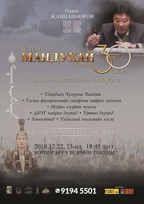 Монголын орчин цагийн түүхэн уран сайхны кино “Мандухай сэцэн хатан” дэлгэцнээ анх гарснаас хойш 30 жил болж байгааг тохиолдуулан уг киноны хөгжмийг 12 дугаар сарын 22,23-ны үдэш Симфони найрал, Морин хуурын чуулга, Найрал дуучид, Үндэсний хөгжимчид, Уртын дуучид, Хөөмэйчид Чулууны Чинбатын удирдлагаар бүрэн эхээр нь анх удаа эгшиглүүлэхээр бэлтгэж байна.