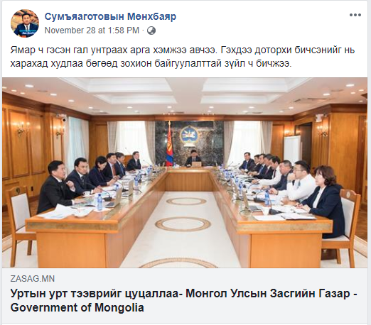 Асуудлыг эргэж тодруулбал, Засгийн газрын хуралдаанаас уртын урт тээврийг цуцаллаа гэсэн мэдээллийг Засгийн газрын Хэвлэл мэдээлэл, олон нийттэй харилцах албанаас мэдээлсний дараахан С.Мөнхбаяр “Ямар ч гэсэн гал унтраах арга хэмжээ авчээ. Гэхдээ доторх бичсэнийг нь харахад худлаа бөгөөд зохион байгуулалттай зүйл ч бичжээ” хэмээн өөрийн хувийн аккаунтаар олон нийтэд түгээсэн юм.