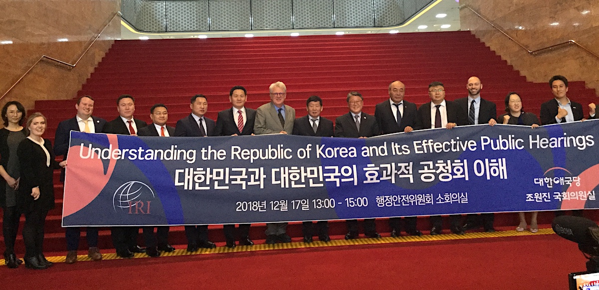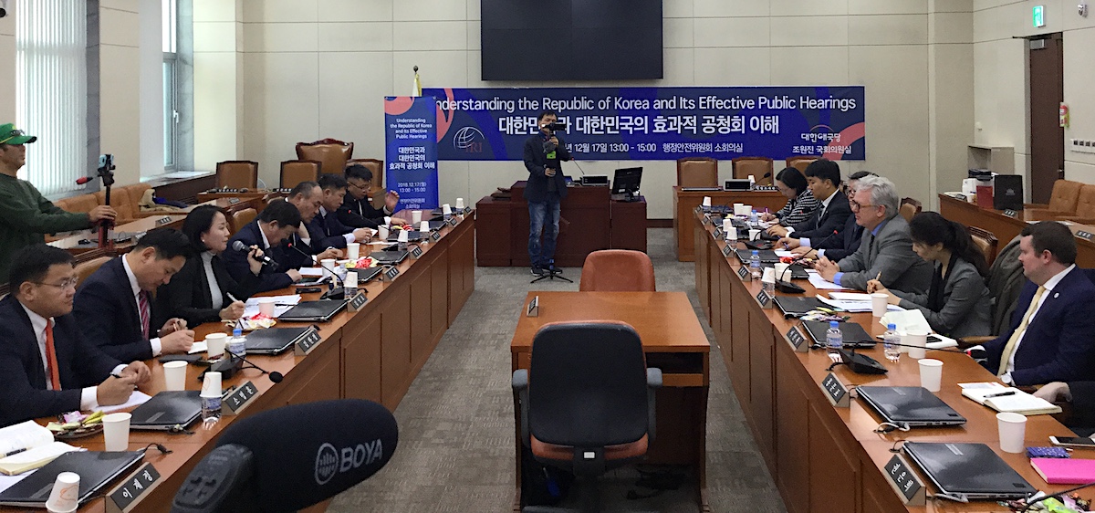 УИХ-ын гишүүн, Төрийн байгуулалтын байнгын хорооны дарга Д.Лүндээжанцан, УИХ-ын гишүүн, УИХ дахь Ардчилсан намын бүлгийн дарга Д.Эрдэнэбат, УИХ-ын гишүүн Ц.Мөнх-Оргил, Засгийн газрын Хэрэг эрхлэх газрын дэд дарга У.Бямбасүрэн, Өвөрхангай аймгийн иргэдийн Төлөөлөгчдийн Хурлын дарга А.Ишдорж болон бусад албаны хүмүүс 2018 оны 12 дугаар сарын 17, 18-ны өдрүүдэд Бүгд Найрамдах Солонгос Улсын Үндэсний ассамблейн нийтийн сонсголын зохион байгуулалтын талаар туршлага судаллаа.