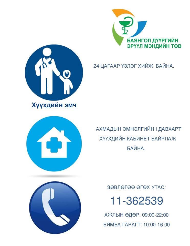 Түүнчлэн эцэг, эхчүүд бага насны хүүхдээ ханиад томуунаас урьдчилан сэргийлэх, гэрийн нөхцөлд хэрхэн асарч сувилах, өвчний шинж тэмдгийг хэдийд таньж мэдэх, тохирох эм бэлдмэлийг ямар байдлаар сонгож хэрэглэх, эмнэлгийн яаралтай тусламжийг ямар үед авах вэ гэх мэт олон талын зөвлөгөөг мэргэжлийн эмчээс утсаар асууж лавлах бүрэн боломжтой юм.