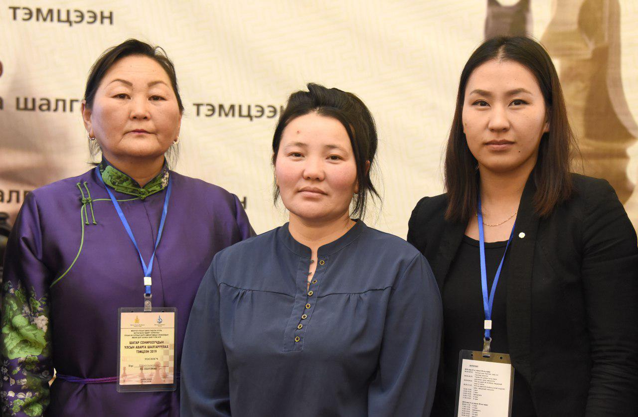 Харин эмэгтэй төрөлд 34 шатарчин оролцсоноос нийслэлийн Баянзүрх дүүргийн оролцогч Ө.Уянга /35 нас/ 7 оноогоор тэмцээнийг тэргүүлж алтан медаль хүртсэн бол Налайх дүүргээс оролцож буй Г.Ариунбаяр /6.5 оноо/ удаалж, Төв аймгийн оролцогч Д.Баасанжаргал /6.0 оноо/ гуравдугаар байрт шалгарлаа.