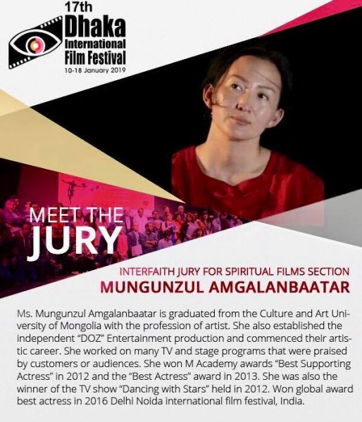 Энэ удаагийн кино наадмын “Spiritual Films Section”-ийн шүүгчээр Монгол Улсаас найруулагч, жүжигчин А.Мөнгөнзул албан ёсоор уригджээ.