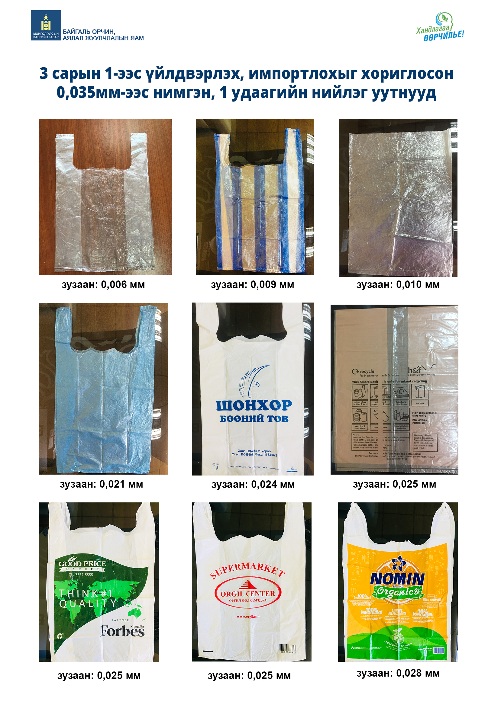2018 оны 6 дугаар сарын 20-ны өдрийн Засгийн газрын тогтоолоор 2019 оны 3 сарын 1-ээс бүх төрлийн 0.035 мм болон түүнээс нимгэн нэг удаагийн нийлэг хальсан уутыг худалдаа, үйлчилгээнд сав баглаа боодлын зориулалтаар үйлдвэрлэх, импортлохийг хориглосон.