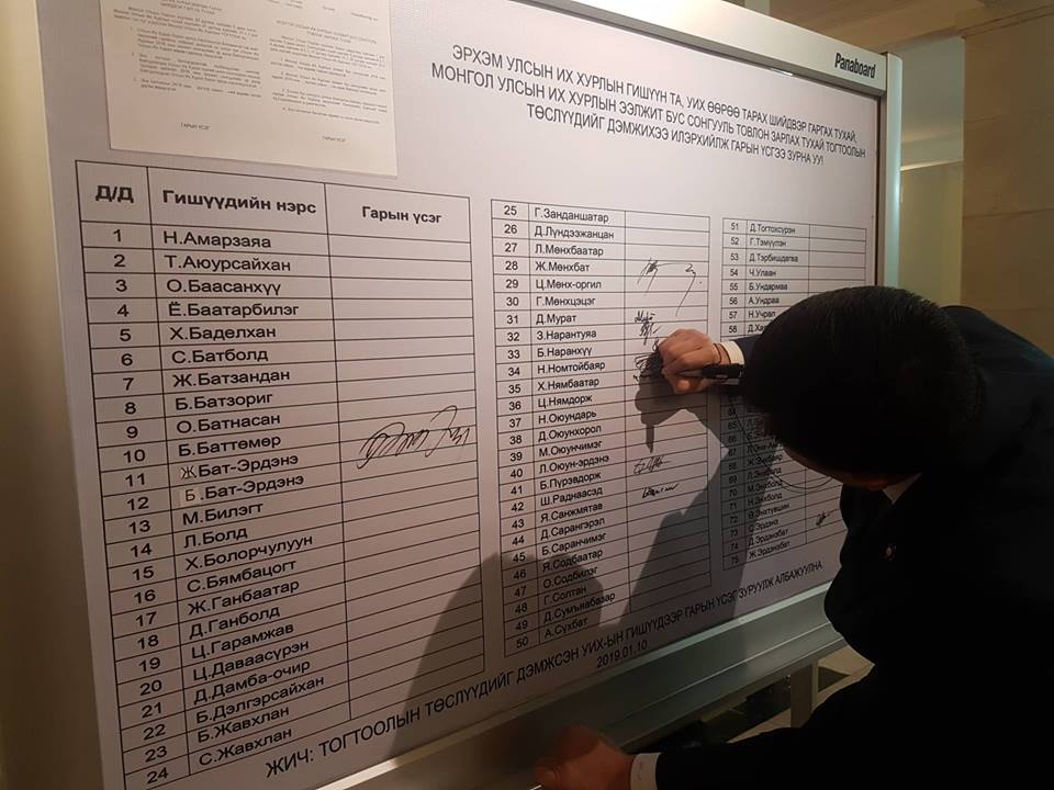 УИХ-ыг тараах тогтоолын төсөлд гарын үсэг зурсан гишүүдийн нэрс: