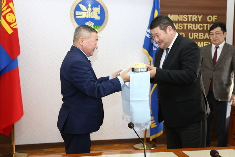 Барилга, хот байгуулалтын сайд Х.Баделхан, Төрийн нарийн бичгийн дарга С.Магнайсүрэн болон яамны нийт удирдлага, хамт олон шинээр томилогдсон дэд сайд Б.Мөнхбаатарыг энэ сарын 10-нд хүлээн авч, хүндэтгэл үзүүлсэн байна.