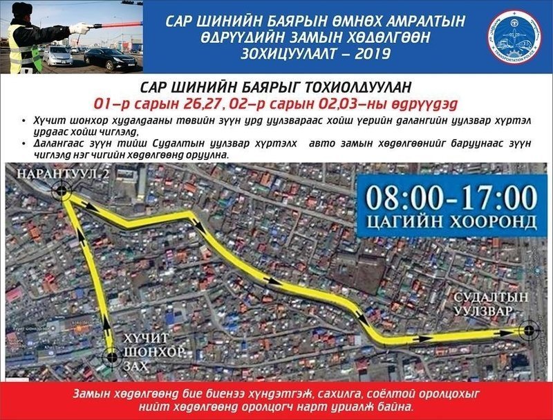 Эдгээр өдрүүдэд өвлийн хязгаарлалтын бүс болон Сонгинохайрхан дүүргийн Саппорогийн уулзвараас Таван шарын уулзвар хүртэлх замд замын хөдөлгөөнд оролцуулахыг хориглох юм.