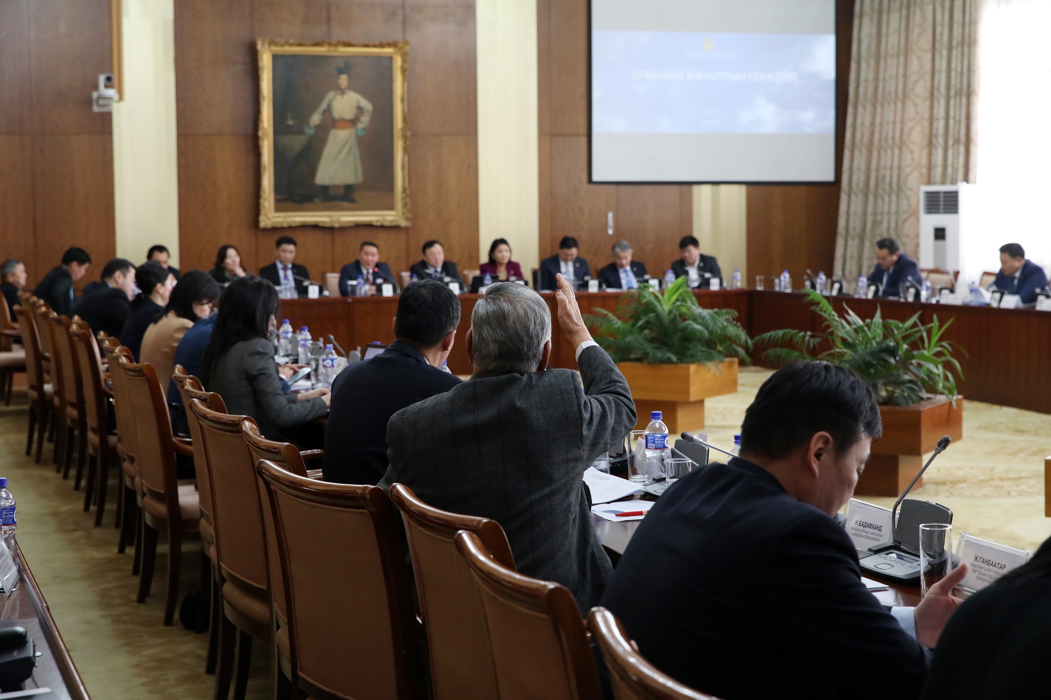 Агаарын бохирдлын асуудлаарх Ерөнхий хяналтын сонсгол Төрийн ордны Жинжин Д.Сүхбаатарын танхимд үргэлжилж байна.