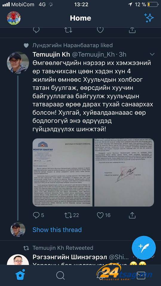 Өмгөөллийн тухай хууль батлах тухай яриа ид яригдаж буй энэ цаг үед Өмгөөлөгчдийн холбооны талаарх таагүй мэдээлэл цахим орчинд тархаад байна. Тодруулбал, Хууль зүйн сайд асан Х.Тэмүүжин нь өөрийн твитер хаягтаа “Өмгөөлөгчдийн нэрээр их хэмжээний өр тавьчихсан цөөн хэдэн хүн дөрвөн жилийн өмнөөс Хуульчдын холбоог татан буулгаж, өөрсдийн хуучин байгууллагаа байгуулах замаар хуульчдын татвараар өрөө дарахаар санаархаж байна. Хулгай, хуйвалдаанаас өөр бодлогогүй энэ өдрүүдэд гүйцэлдүүлэх шинжтэй” гэж бичсэн юм.