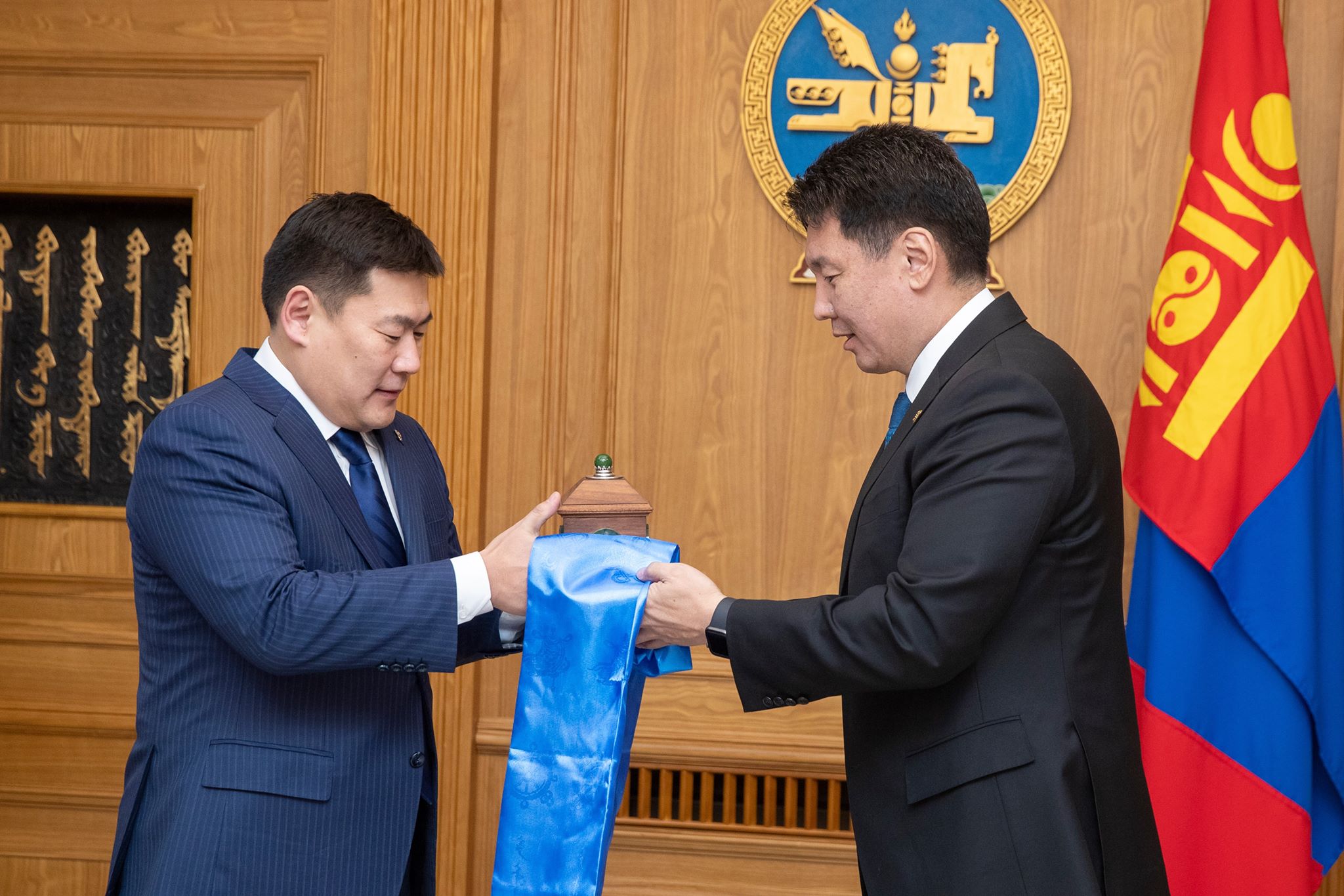 Л.Оюун-Эрдэнийг ЗГХЭГ-ын даргаар томилогдсонд Монгол Улсын Ерөнхий сайд У.Хүрэлсүх баяр хүргэж, ажлын амжилт хүсээд, шинэ даргад тамгыг нь гардуулан өглөө.