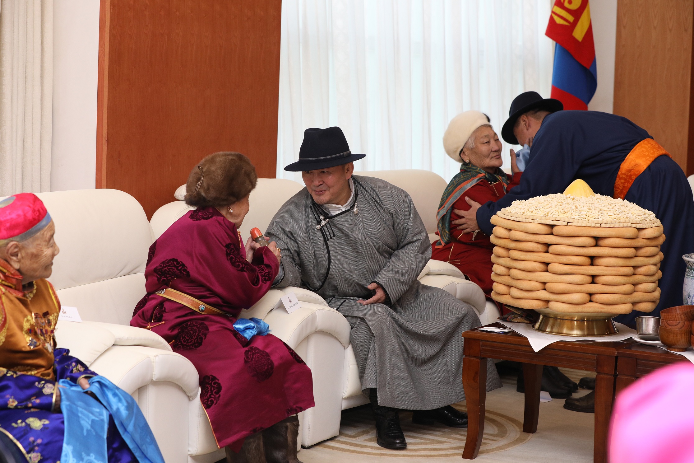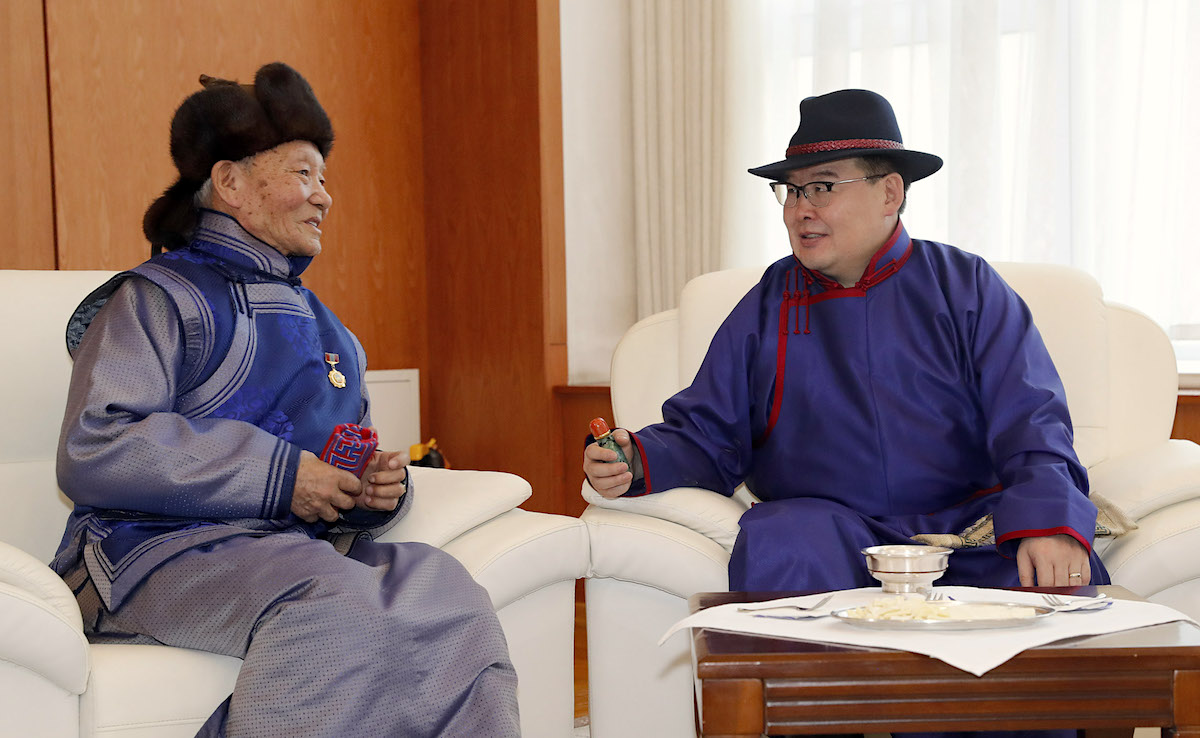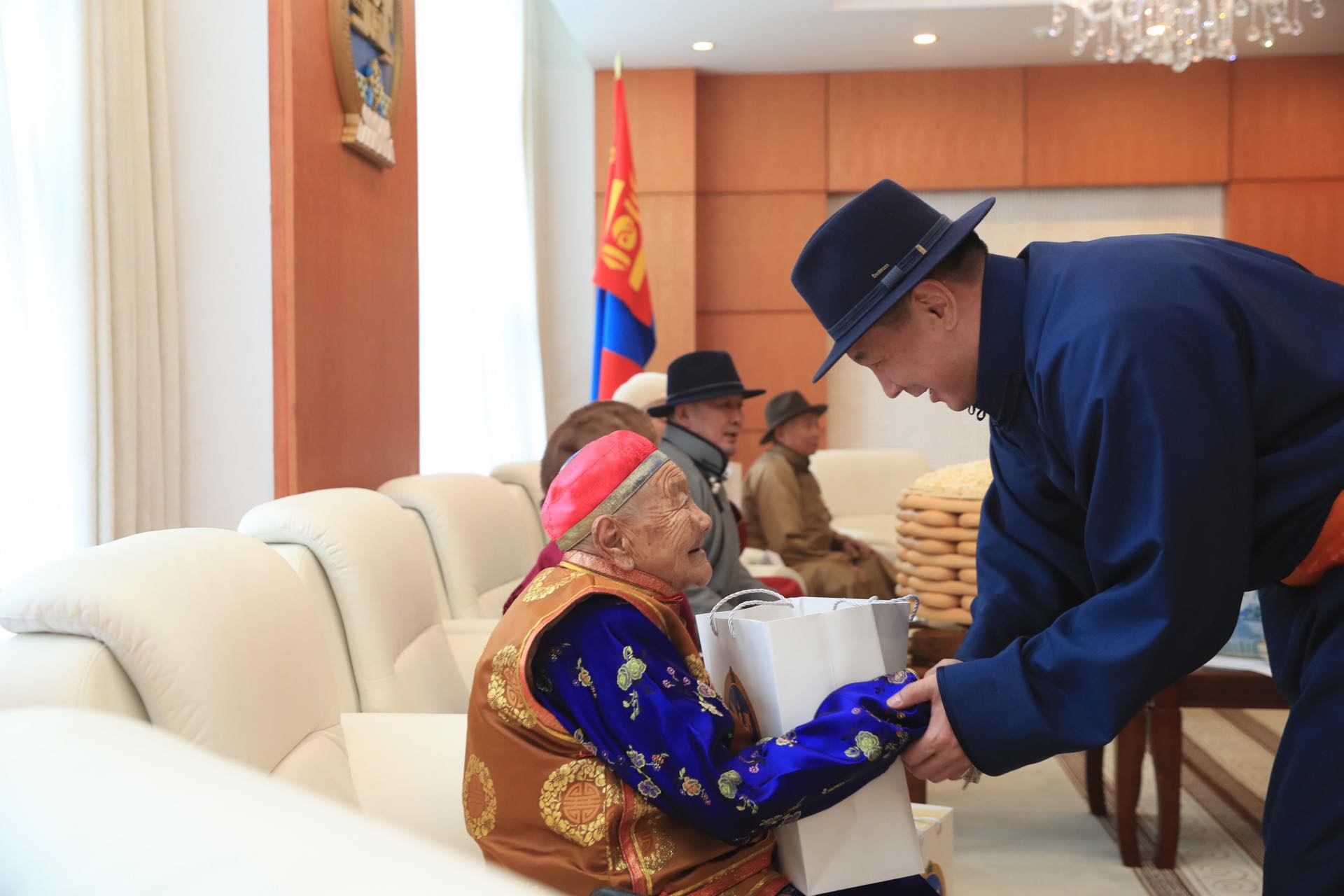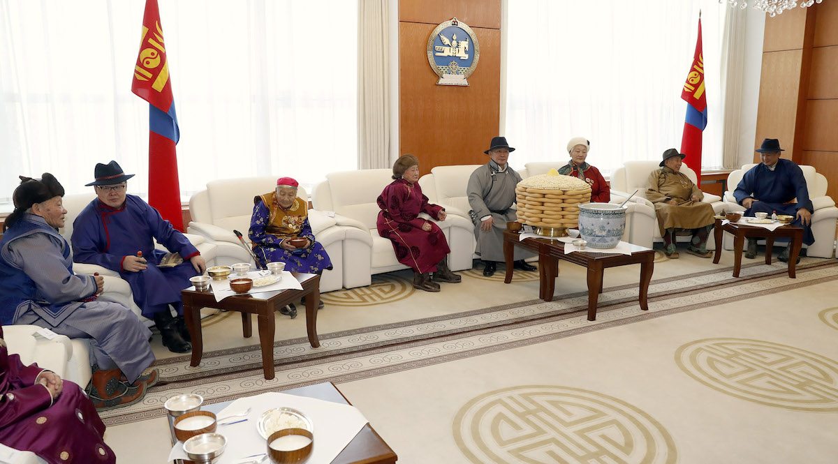 Төр, засгийн удирдлагуудын хүндэтгэл үзүүлж золгосон ахмадууд 80-98 настай, малчин, үйлчилгээний ажилтан, санхүү, нягтлан бодогч, АИХ-ын депутат зэрэг салбар бүрийн төлөөллүүд байлаа. Монгол Улсын Ерөнхийлөгч Х.Баттулга ахмадуудтай золгосны дараа Төрийн ордны Есөн хөлт, цагаан тугт танхимд дурсгалын зураг татуулж, гарын бэлгээ гардуулав.