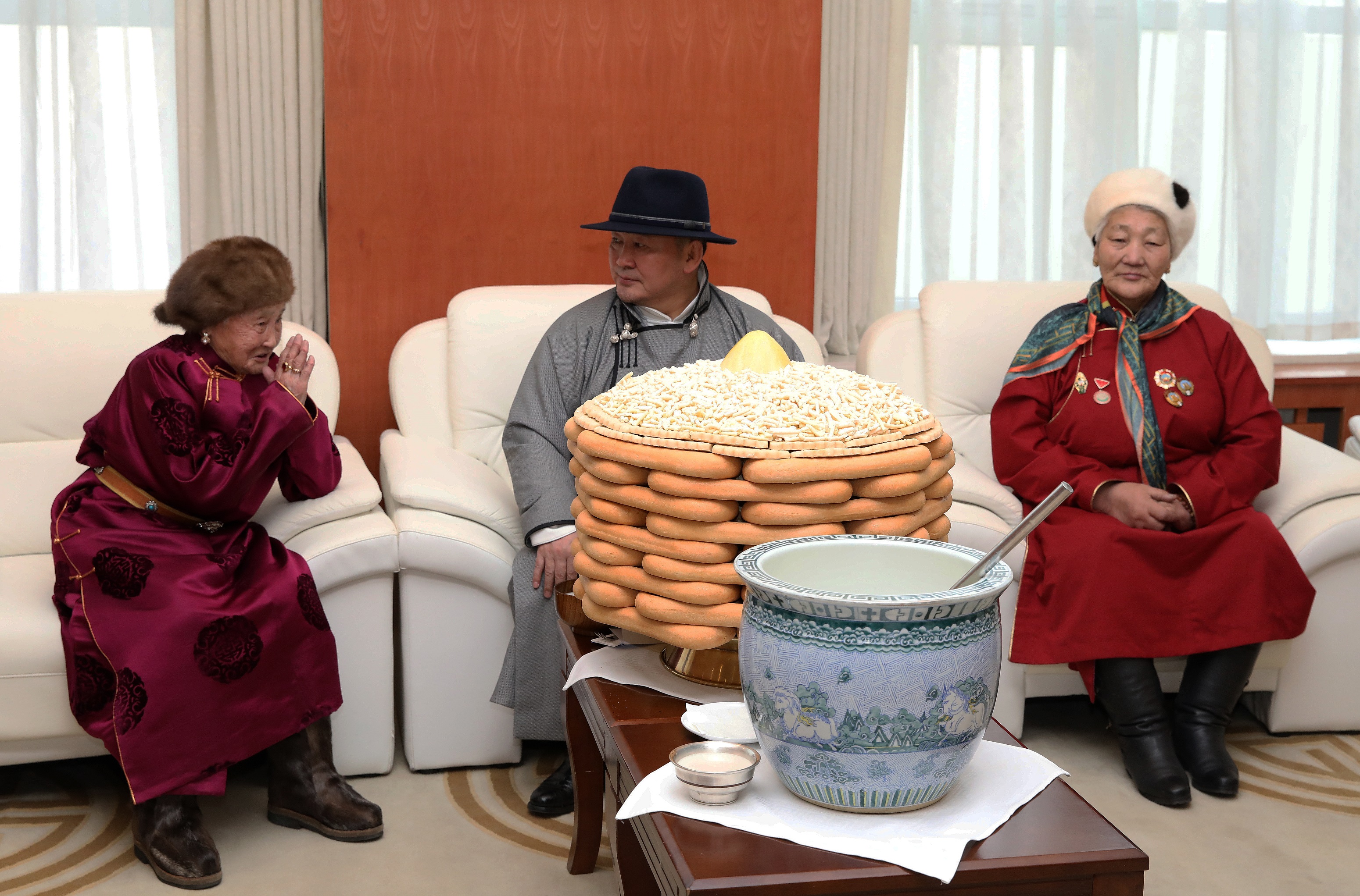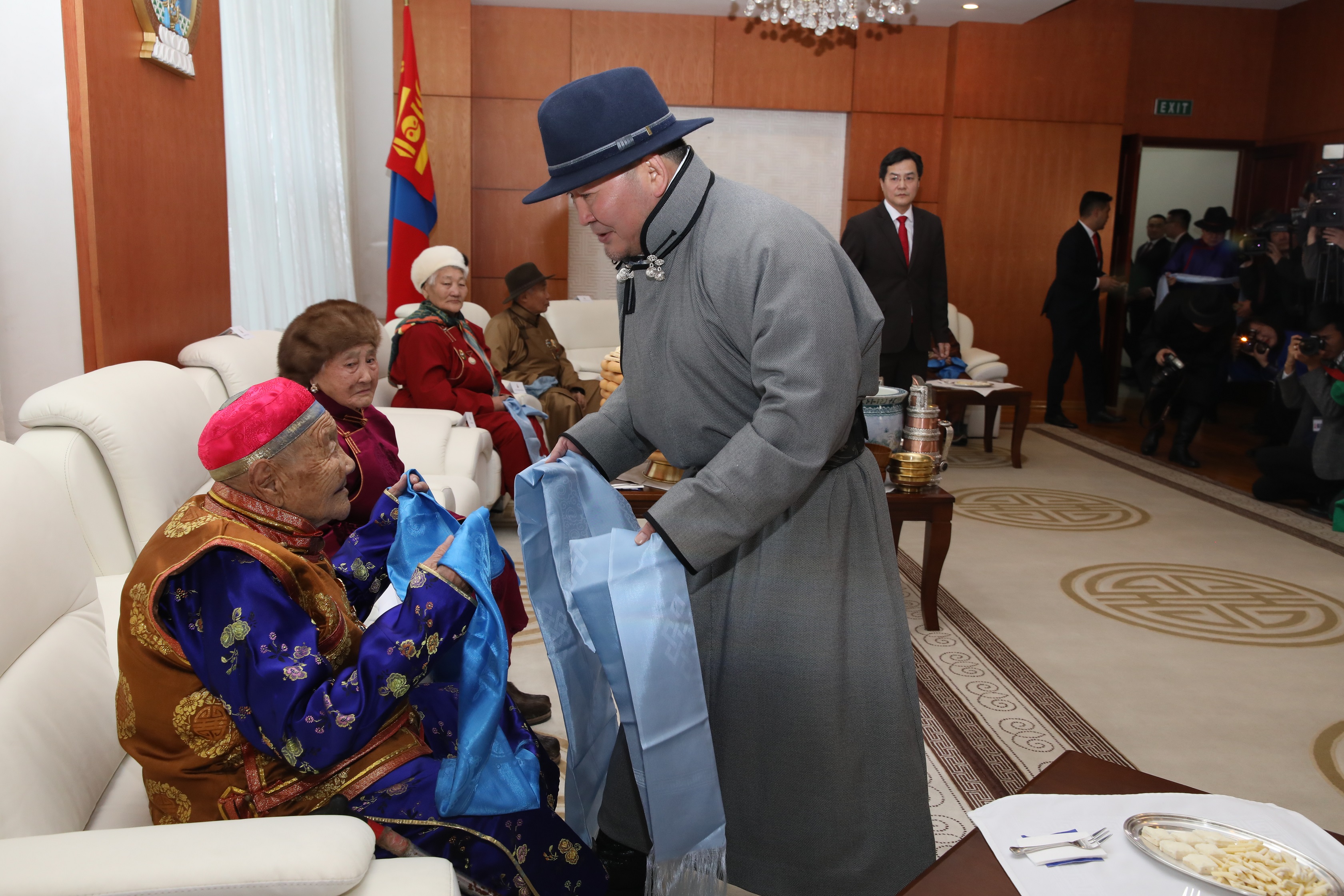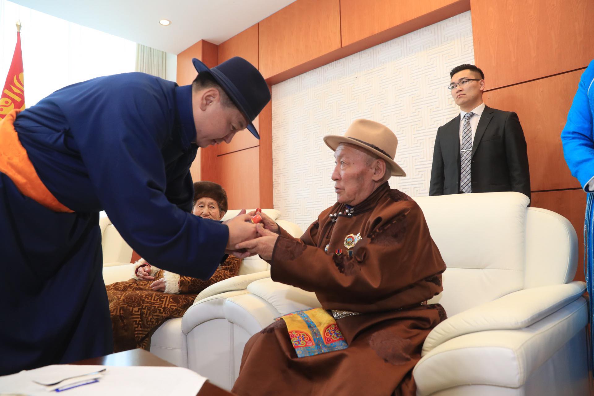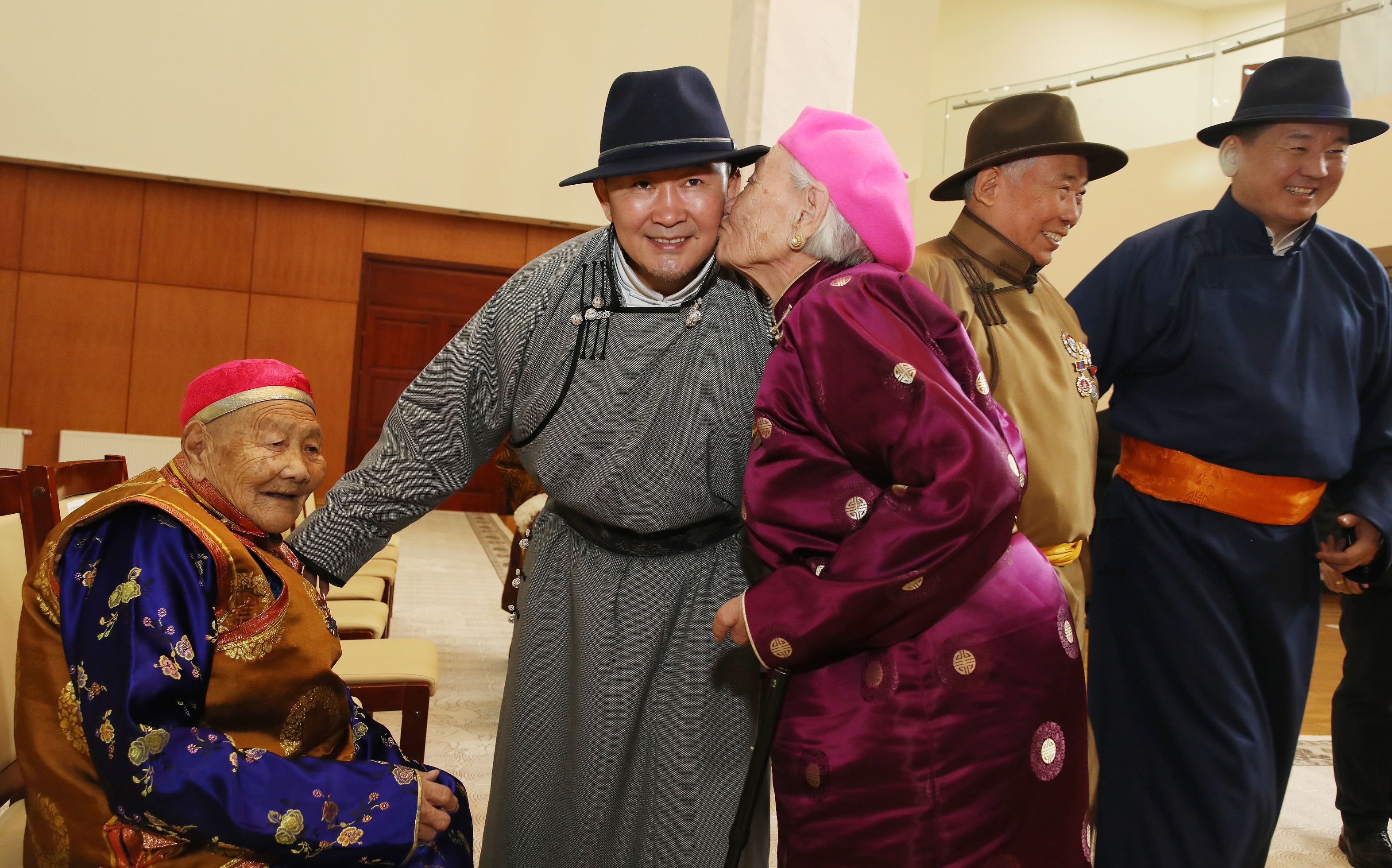 Төр, засгийн удирдлагуудын хүндэтгэл үзүүлж золгосон ахмадууд 80-98 настай, малчин, үйлчилгээний ажилтан, санхүү, нягтлан бодогч, АИХ-ын депутат зэрэг салбар бүрийн төлөөллүүд байлаа. Монгол Улсын Ерөнхийлөгч Х.Баттулга ахмадуудтай золгосны дараа Төрийн ордны Есөн хөлт, цагаан тугт танхимд дурсгалын зураг татуулж, гарын бэлгээ гардуулав.