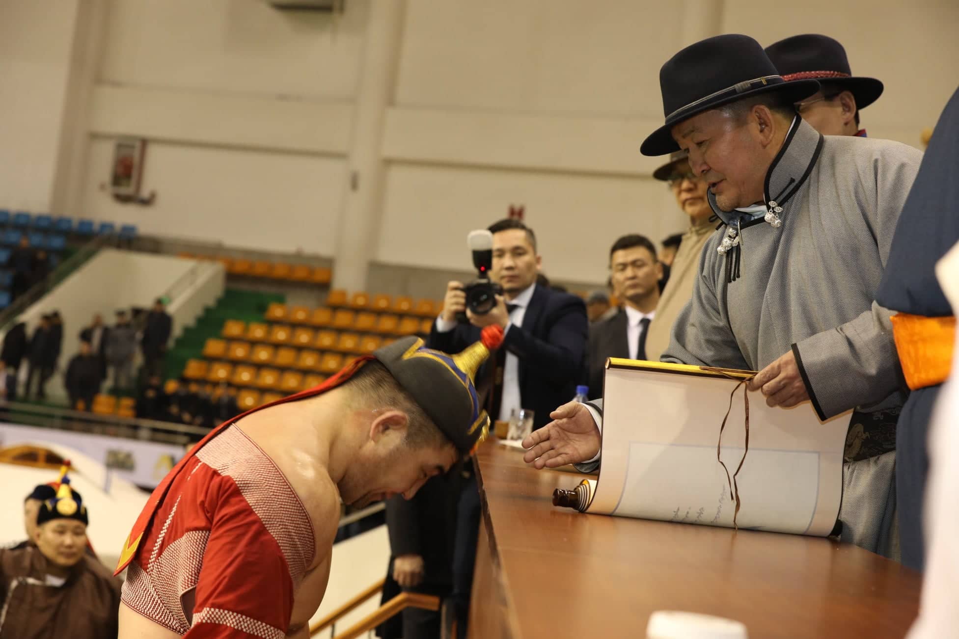 Бөхийн барилдаан дуусмагц Монгол Улсын Ерөнхийлөгч Х.Баттулга их шөвгийн дөрвөн бөхөд “Бахархал”, мөнгөн шагнал гардууллаа.