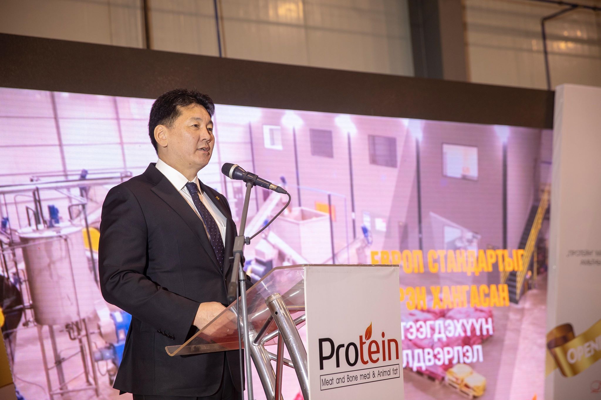 Тэрбээр “Хөдөө аж ахуй, мал аж ахуй, газар тариалангийн салбараа хөгжүүлж эрүүл хүнсээр иргэдээ хангах, улмаар хүнс экспортлогч орон болох зорилтыг хэрэгжүүлэхэд “Protein” үйлдвэр хувь нэмэр оруулна гэдгийг тэмдэглэв. Баялаг бүтээн, ажлын байр бий болгож байгаа аж ахуйн нэгжүүдээ Засгийн газар бүх талаар дэмжиж, хамтран ажиллана” гэж хэллээ.