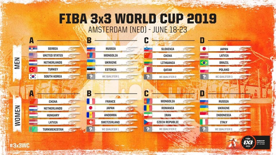 3х3 сагсан бөмбөгийн Дэлхийн аварга шалгаруулах тэмцээн ирэх зургадугаар сарын 18-23-ны өдрүүдэд Нидерланд улсын Амстердам хотод болох билээ. FIBA 3×3 World Cup-2019 тэмцээнд Монгол Улсын эрэгтэй, эмэгтэй багууд өрсөлдөх бөгөөд сугалаа гарлаа.