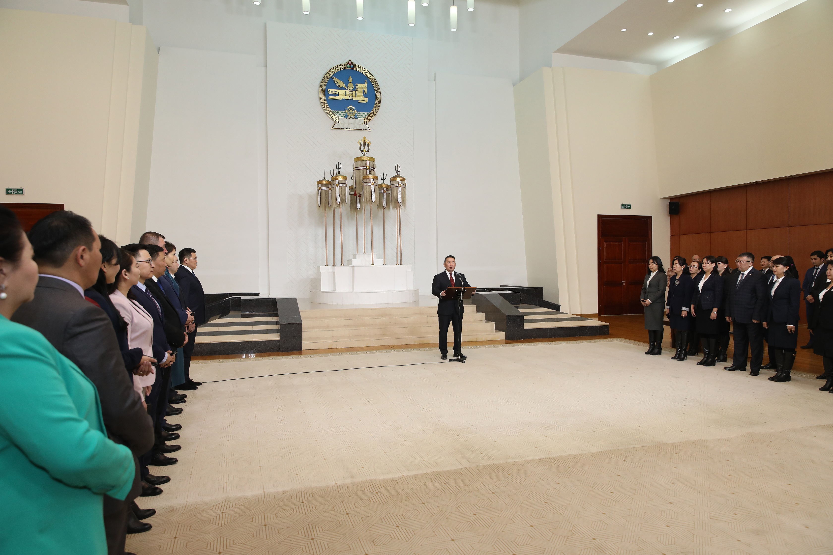 Монгол Улсын Ерөнхийлөгч Х.Баттулга өнөөдөр Төрийн ордны Есөн хөлт, цагаан тугт танхимд шинээр томилогдсон шүүгч, Ерөнхий шүүгч нарт зарлиг гардуулж, үг хэлэв.