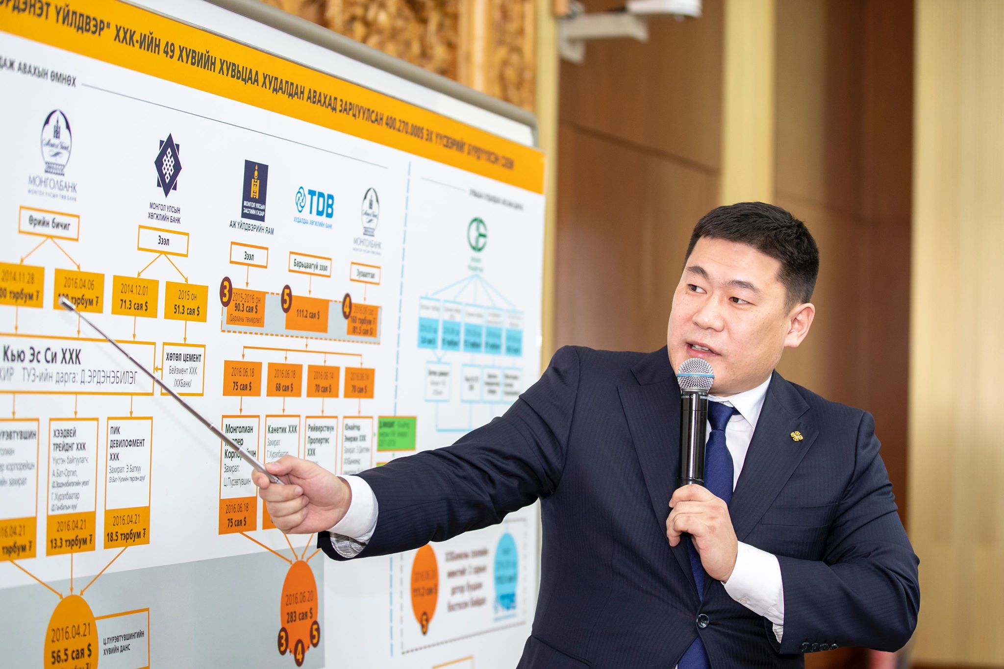 Монгол Улсын сайд, Засгийн газрын Хэрэг эрхлэх газрын дарга Л.Оюун-Эрдэнэ “Эрдэнэт үйлдвэр” ХХК-ийн хувьчлалтай холбоотой асуудлаар мэдээлэл хийлээ. Тэрээр тус компанийн 49 хувийн хувьцааг “Монголиан коппер корпорэйшн” компани худалдан авсан 400 сая 270 мянган ам.доллараа хэрхэн бүрдүүлсэн талаарх схемийг танилцуулав.