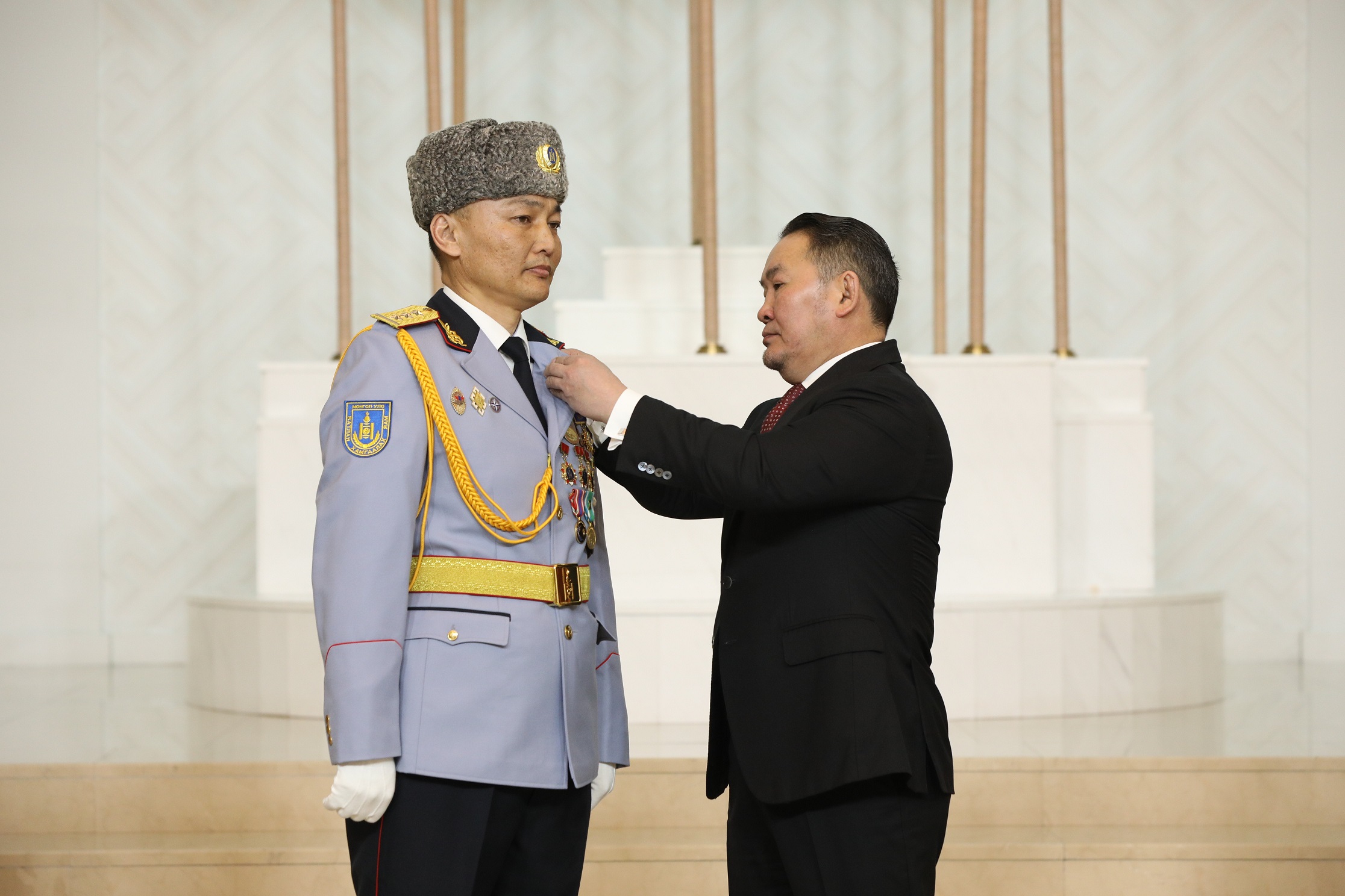 ТӨРИЙН ДЭЭД ЦОЛ, ОДОН, МЕДАЛЬ ГАРДУУЛСНЫ ДАРАА МОНГОЛ УЛСЫН ЕРӨНХИЙЛӨГЧ Х.БАТТУЛГА ГАВЬЯА ЗҮТГЭЛЭЭ ҮНЭЛҮҮЛСЭН ЭРХМҮҮДЭД ХАНДАЖ:
