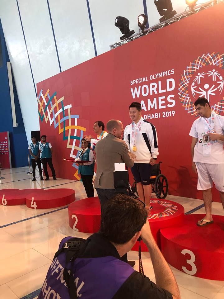 АНЭУ-ын Абу Даби хотноо тусгай олимпын наадам тав дахь өдрөө үргэлжилж байна. Өчигдөр /2019.03.18/ усан сэлэлтийн 25 метрийн мэлхий сэлэлтийн эрэгтэйчүүдийн төрөлд өрсөлдсөн Б.Элбэрэлт алтан медалийг хүртлээ.