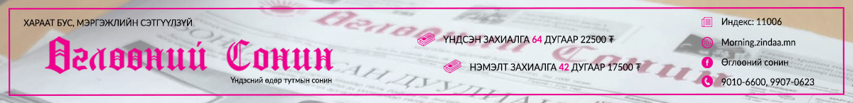 Үүнээс гадна уншигч таны ярилцаад суух юмсан, мэнд мэдэх юмсан хэмээн хүсдэг алдар суутнуудыг ч “Өглөөний сонин”-оор дамжуулан байнга уулзуулахын зэрэгцээ таны засч залруулахсан хэмээн нүд сэтгэлдээ эмзэглэж явдаг бүхнийг тал талын эх сурвалжаар сэтгүүл зүйн бүхий л төрлөөр хамтдаа засч эмчлэхийн төлөө ажиллана. Тэгэхээр уншигч та үүр үүрийн шаргал гэгээг “Өглөөний сонин”-ы сонин хачинтай хамт сэтгэл оюундаа асаая гэвэл манай сонины улиралд гарах 64 дугаарын захиалгын үнэ 22500 төгрөг юм. Хамтдаа уншъя, мэдье, хөгжье.