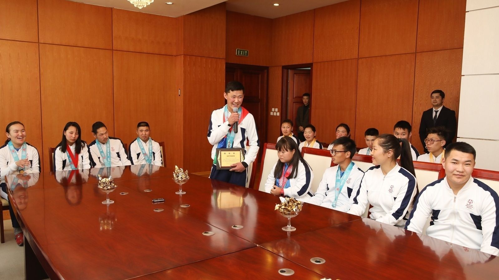 Энэ үеэрээ Төрийн тэргүүн Засгийн газраас медаль хүртсэн тамирчдад мөнгөн урамшуулал олгож байгааг сайшаан, оюуны бэрхшээлтэй хүмүүсийн дунд зохиогдох аливаа тэмцээн, уралдаанд төр, засгаас санхүүгийн дэмжлэг үзүүлж байх ёстой хэмээн цохон тэмдэглэлээ.