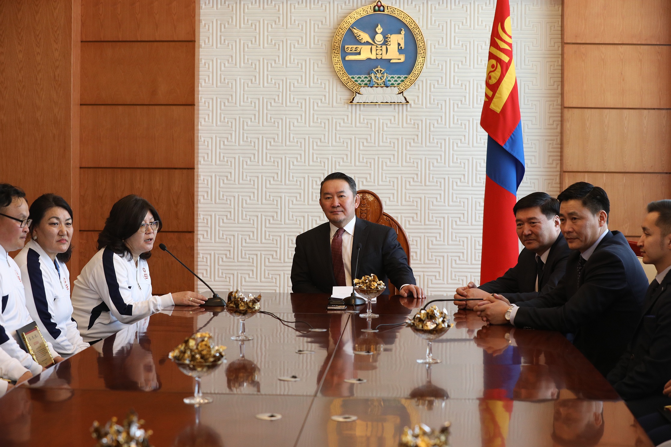Харин өнөөдөр Монгол Улсын Ерөнхийлөгч Х.Баттулга тэднийг олимпын наадамд амжилттай оролцож ирсэнд нь баяр хүргэн, хүлээн авч уулзлаа.