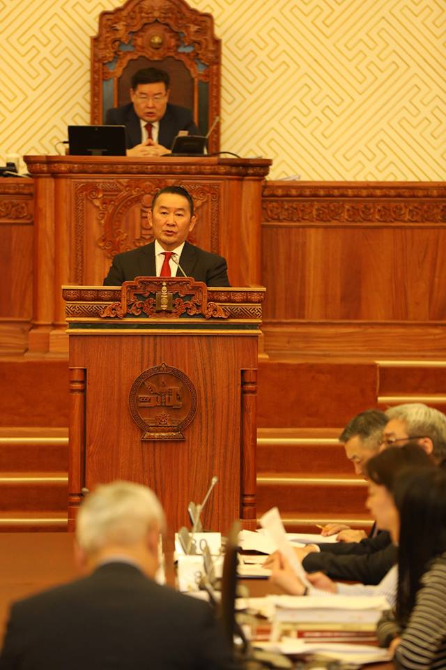 Хуулийн төслүүдийг хэлэлцэхтэй холбогдуулан Ерөнхийлөгч Х.Баттулга хууль санаачлагчийн илтгэлийг уншиж сонордуулав.