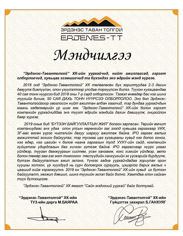 “Эрдэнэс-Таван толгой” ХК 50 сая дахь тонн нүүрсээ олборложээ