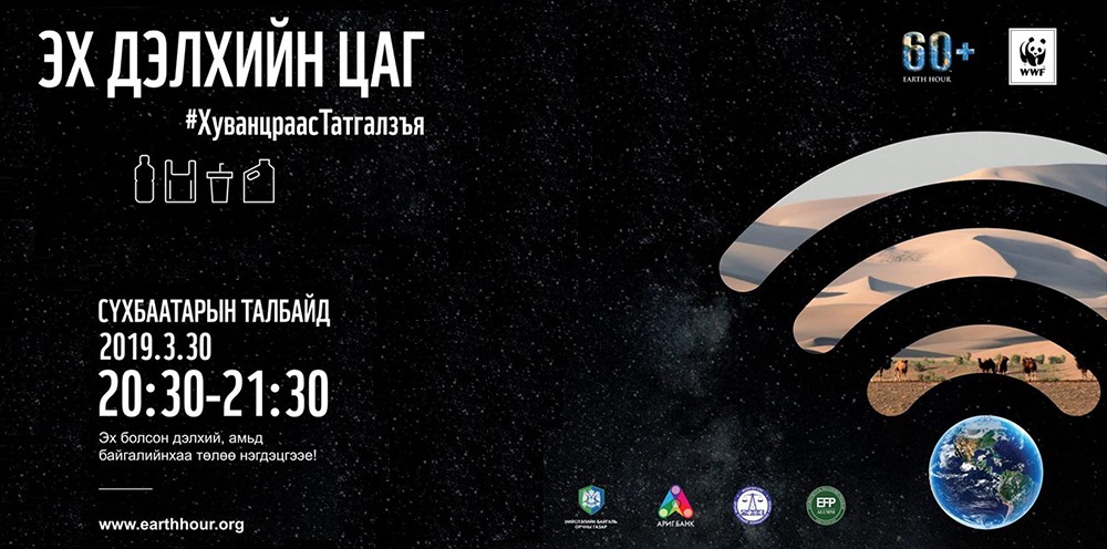 Уламжлал ёсоор “Эх дэлхийн цаг-2019” гуравдугаар сарын 30-ны өдрийн Бямба гаригт орон нутгийн цагаар үдшийн 20:30-т дэлхий даяар нэгэн зэрэг эхэлнэ. Д.Сүхбаатарын талбайд болох арга хэмжээг Дэлхийн байгаль хамгаалах сан (WWF)-гийн Монгол дахь хөтөлбөрийн газар, “Байгаль орчны манлайлагчид” ТББ, Нийслэлийн Байгаль орчны газар, Эрчим хүчний зохицуулах хороо, Ариг банк, Байгаль орчин, аялал жуулчлалын яамны Цэнгэг усны нөөц, байгаль хамгаалах төв, Скаутын холбоо, хөлбөмбөгийн “Дэрэн” баг хамтран зохион байгуулна. Уг арга хэмжээний үеэр 20:30 цагаас 21:30 цаг хүртэл Д.Сүхбаатарын талбайн эргэн тойрны гэрлийг унтраах бөгөөд урлагийн тоглолт, хуванцрын хор хөнөөлийн талаар мэдээ мэдээлэл өгөх үйл ажиллагаа явагдана. Нийслэлийн иргэд маань арга хэмжээнд биечлэн оролцож чадахгүй байсан ч гэрийнхээ гэрлийг нэг цаг унтрааж “Эх дэлхийн цаг”-т нэгдэж болох юм.