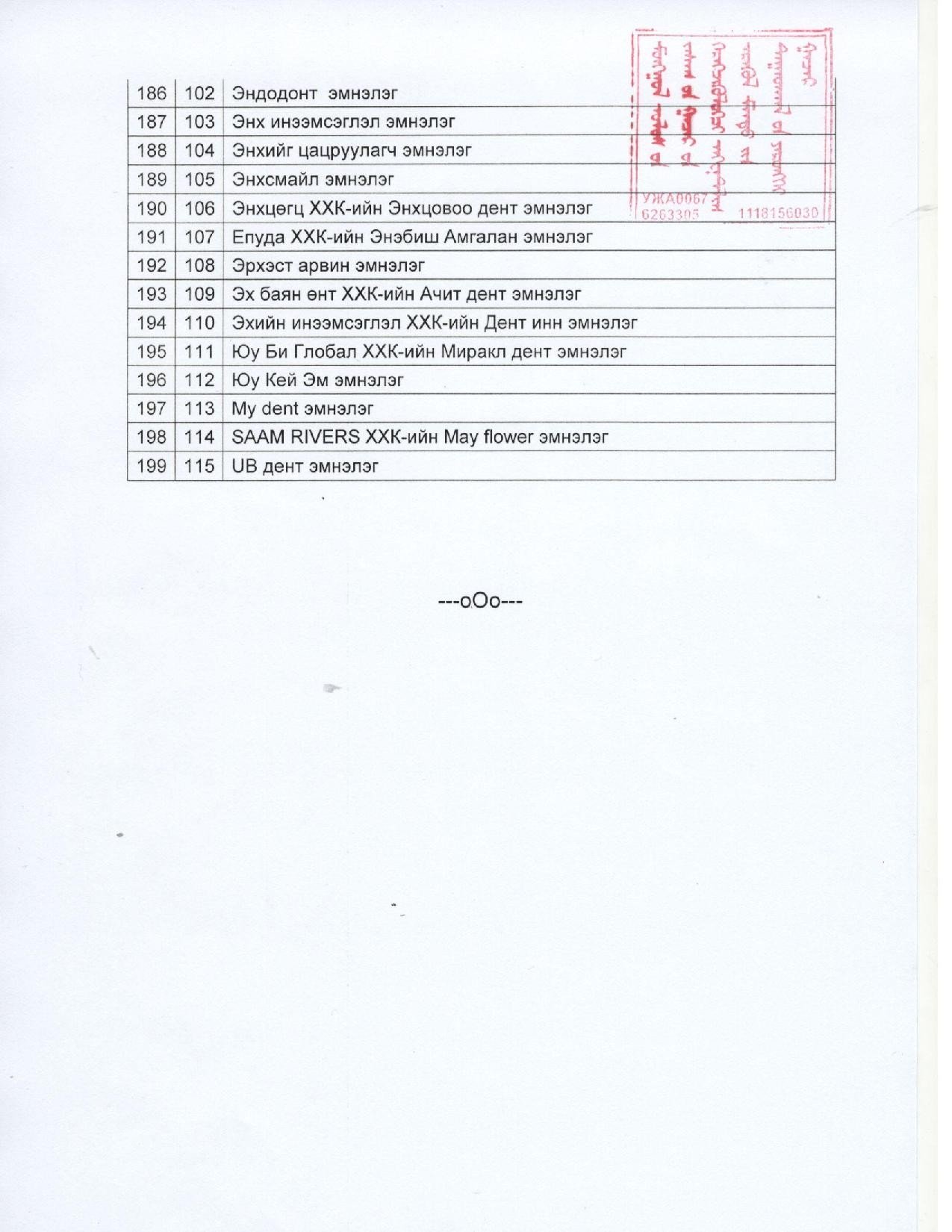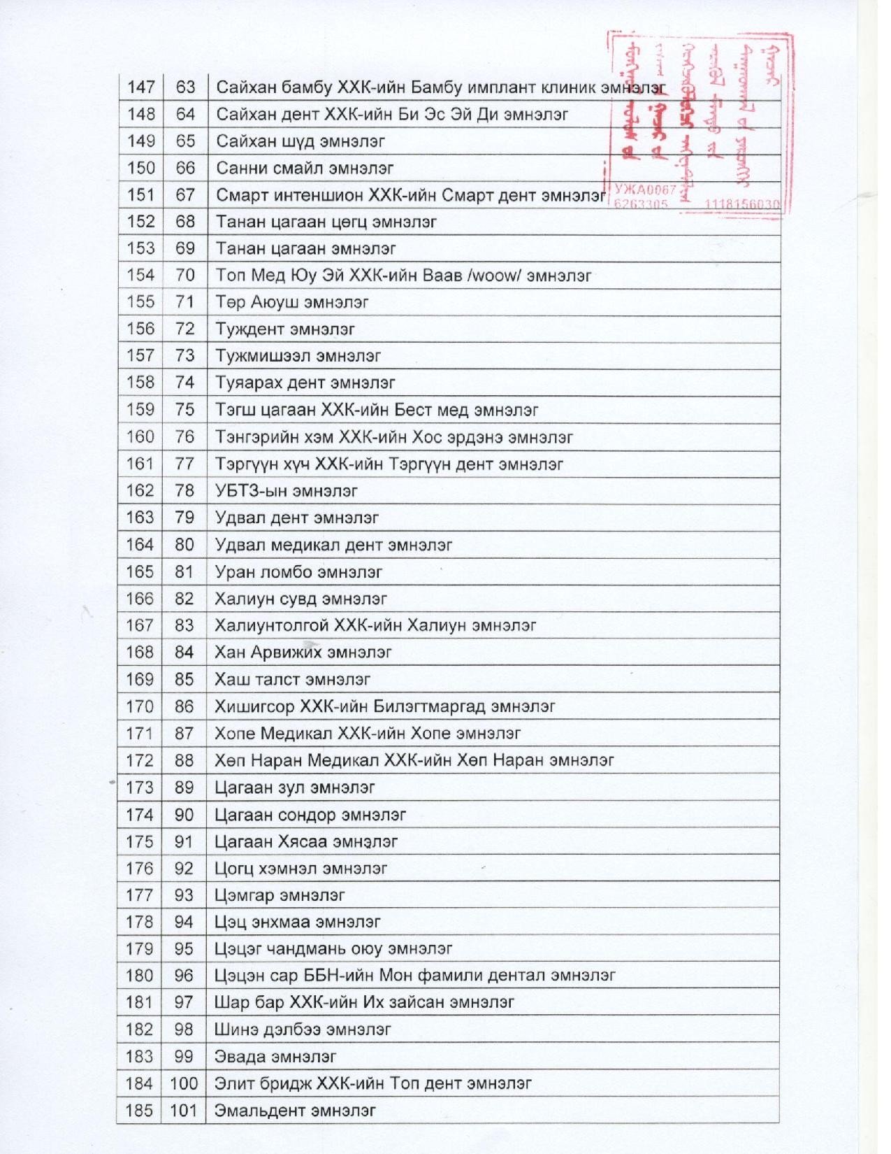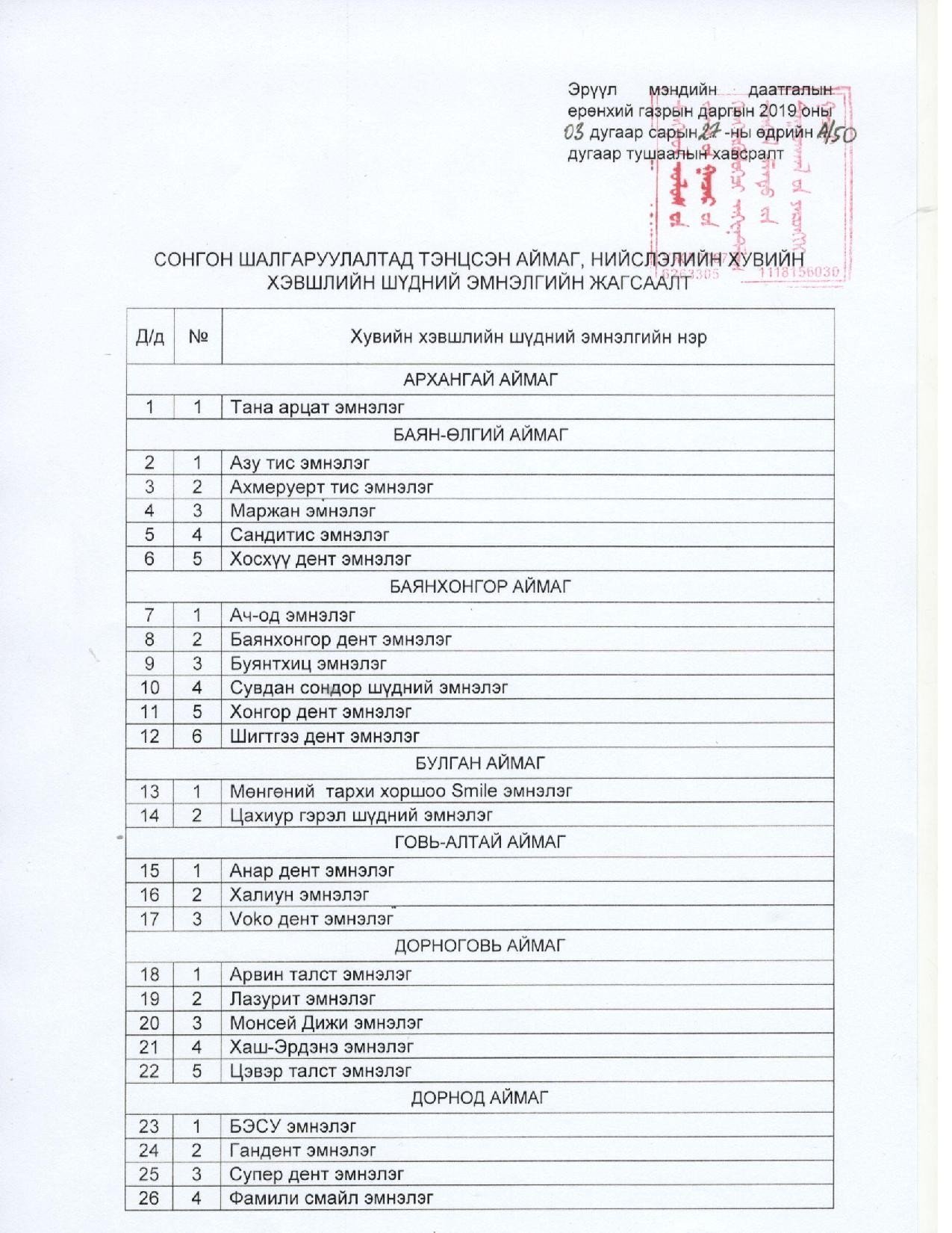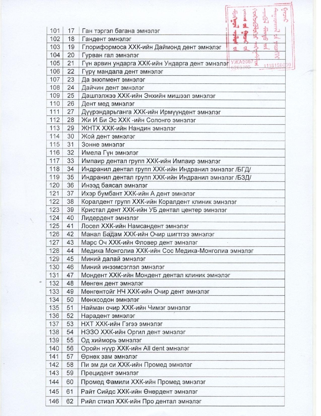 Дээрх эмнэлгүүд Эрүүл мэндийн даатгалын ерөнхий газартай “Эрүүл мэндийн байгууллагаас амны хөндийн эрүүл мэндийн урьдчилан сэргийлэх, эмчлэн эрүүлжүүлэх тусламж, үйлчилгээг худалдан авах гэрээ”-г байгуулаад байна.