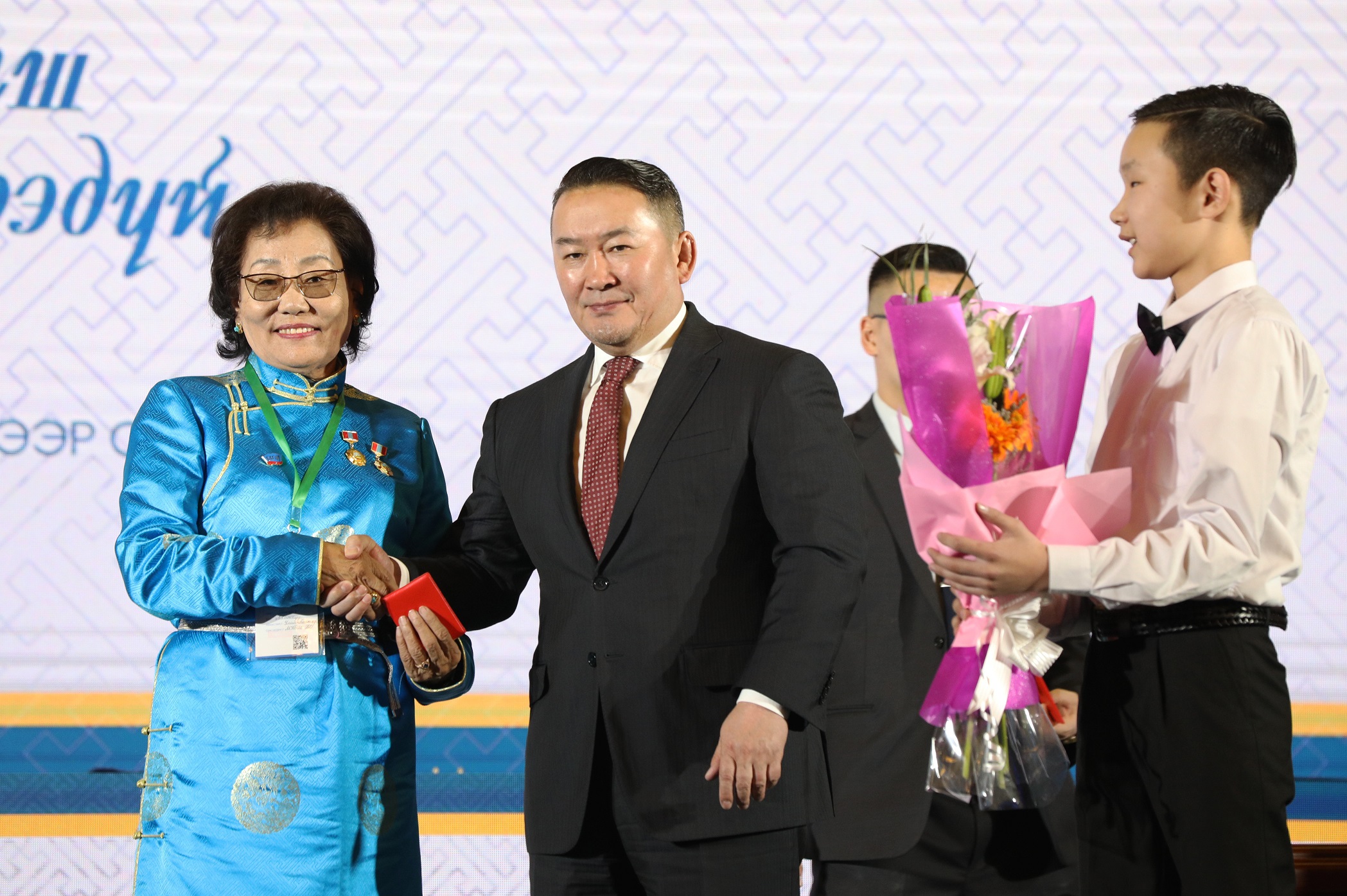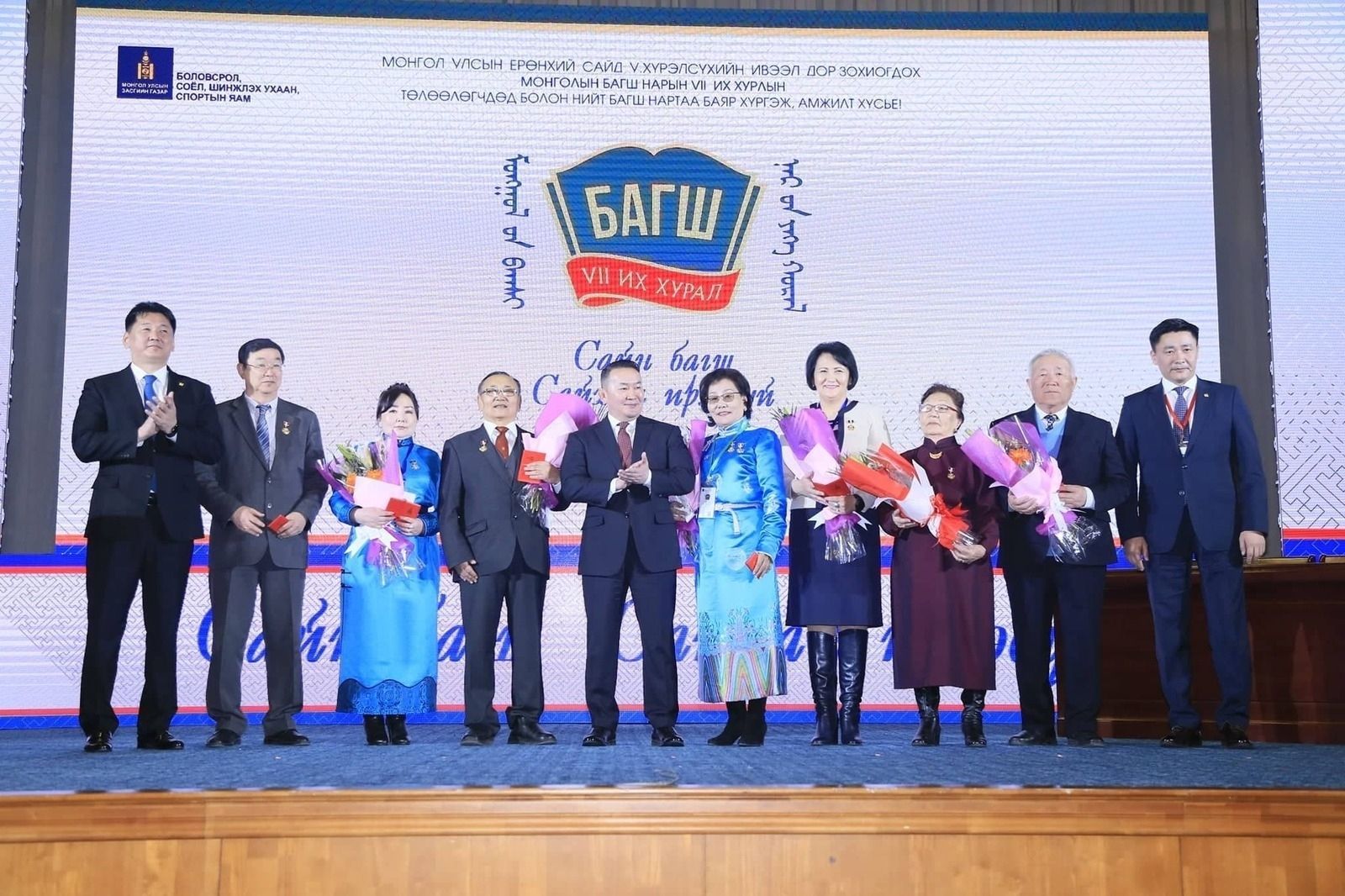 Монголын багш нарын VII их хурлын нээлтийн ёслолын үеэр Монгол Улсын Ерөнхийлөгчийн зарлигаар зарим багшид Монгол Улсын төрийн дээд шагнал Ардын болон Гавьяат багш цол хүртээж байгааг зарлан, Монгол Улсын Ерөнхийлөгчийн зарлигийг уншиж сонордуулаа.