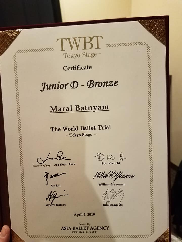 Япон улсын Токио хотноо гуравдугаар сарын 31-нээс энэ сарын 6-ны хооронд зохиогдсон “The World Ballet Trial – Tokyo stage-4” мэргэжлийн балетын жүжигчдийн дунд болсон уралдаанд монгол охин өндөр амжилт үзүүллээ.