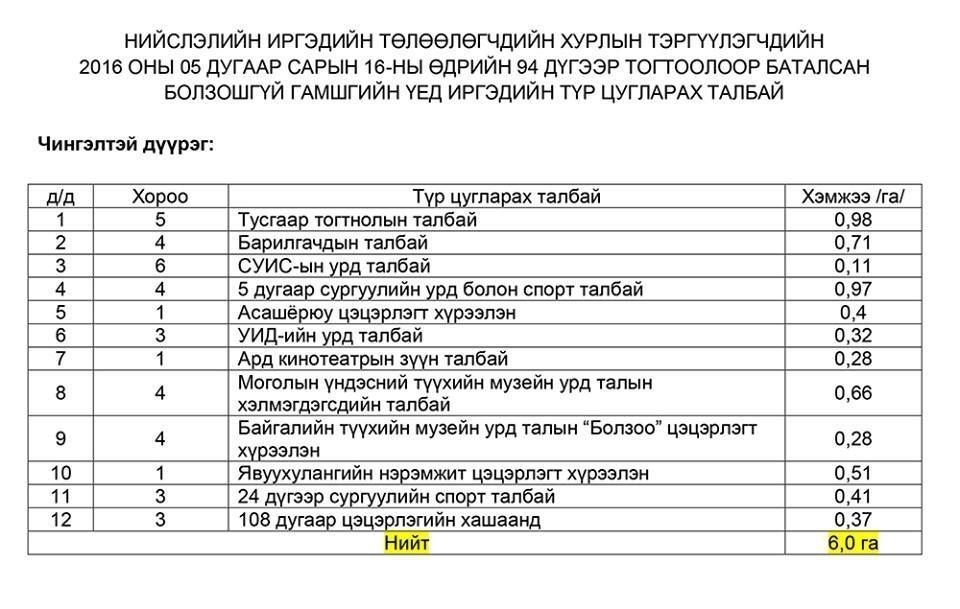 Гуравдугаар шат 2019.04.25-нд явагдах бөгөөд зарлан мэдээллийн дуут дохионы цамхгаар “Газар хөдлөлт” болсон тухай зарлан мэдээлэл дамжуулан хүргэх ба 45 мянга гаруй орон сууцны 480 мянган иргэд гамшгаас хамгаалах 111 аюулгүйн талбайд гарах юм. Нийслэлийн Иргэдийн төлөөлөгчдийн хурлын 2016 оны 94 дүгээр тогтоолоор батлагдсан 111 аюулгүйн талбайн жагсаалтыг хүргэж байна.