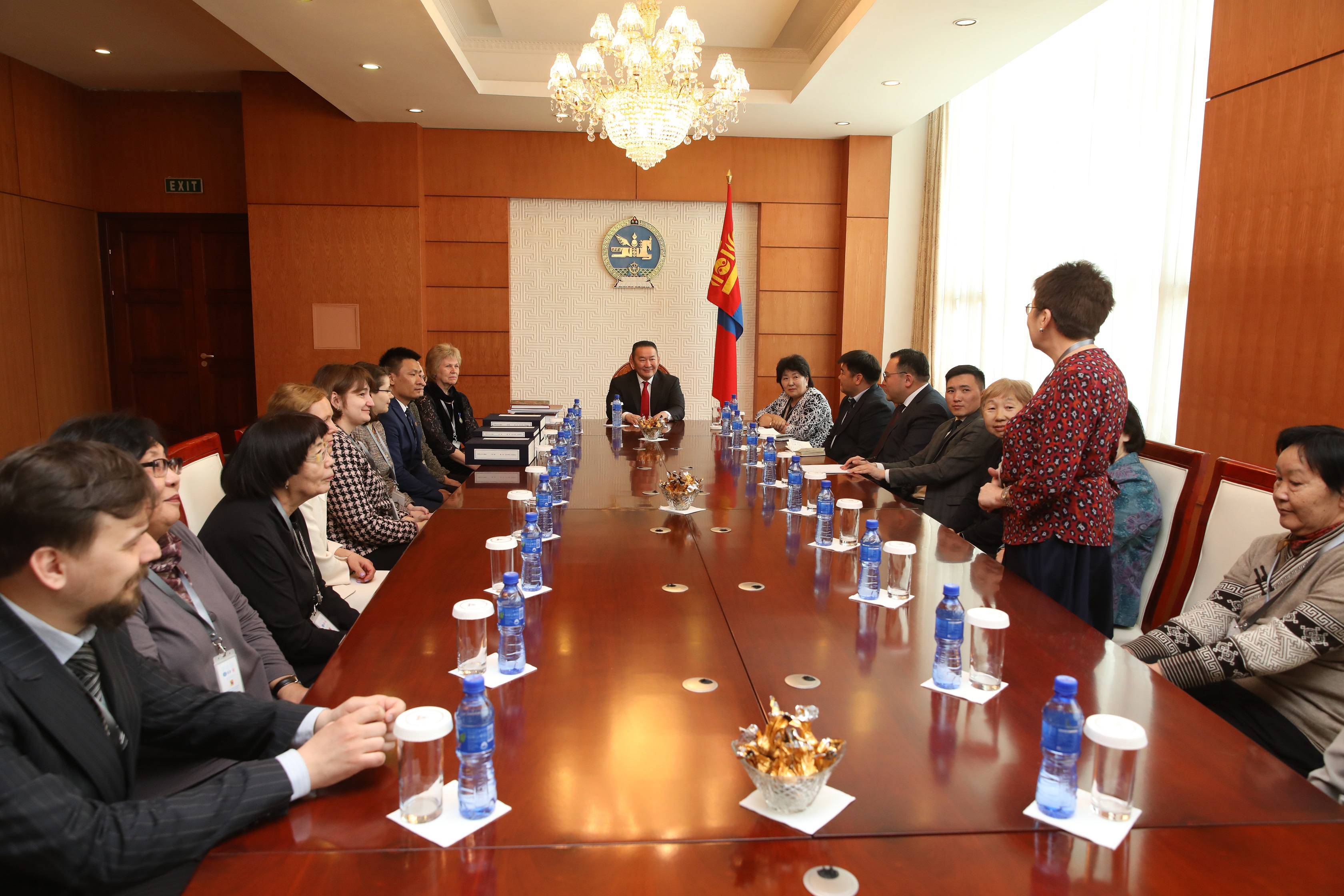 Монгол Улсын Шинжлэх ухааны академийн Түүх, археологийн хүрээлэн, Олон Улсын Монгол Судлалын Холбоо, Оросын Шинжлэх ухааны академийн Дорно дахины гар бичмэлийн хүрээлэнгийн хамтран зохион байгуулж буй дээрх хуралд оролцохоор ирсэн олон улсын Монгол судлаач эрдэмтдийн төлөөллийг өнөөдөр Монгол Улсын Ерөнхийлөгч Х.Баттулга Төрийн ордонд өнөөдөр хүлээн авч уулзлаа.