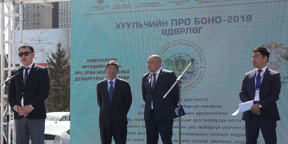 Нийслэлийн Засаг даргын Тамгын газар, Монголын Хуульчдын холбоотой хамтран иргэдийн эрх, хууль ёсны ашиг сонирхлыг хамгаалах зорилгоор хууль зүйн үнэ төлбөргүй зөвлөгөө өгөх “Хуульчийн Про Боно-2019” өдөрлөгийг өнөөдөр Д.Сүхбаатарын талбайд зохион байгуулж байна.