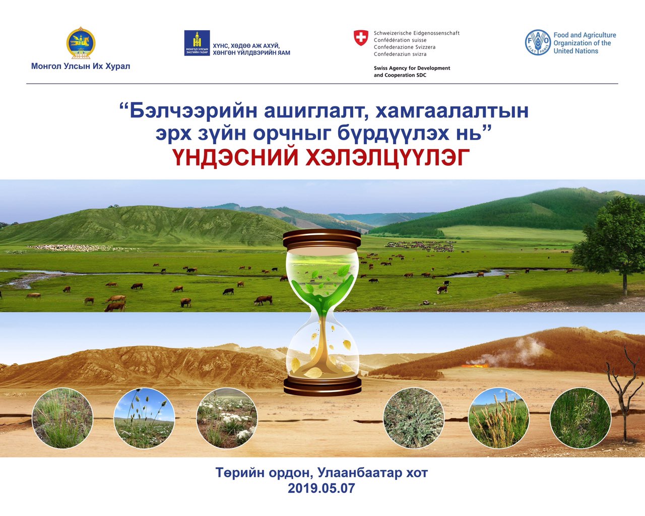 Улсын Их Хурал, НҮБ-ын Хүнс, хөдөө аж ахуйн байгууллага, Швейцарын хөгжлийн агентлагийн Ногоон алт, Малын эрүүл мэнд төсөлтэй хамтран “Бэлчээрийн ашиглалт, хамгаалалтын эрх зүйн орчныг бүрдүүлэх нь” сэдэвт үндэсний хэлэлцүүлгийг энэ сарын 07-ны өдөр Төрийн ордонд зохион байгуулахаар боллоо.